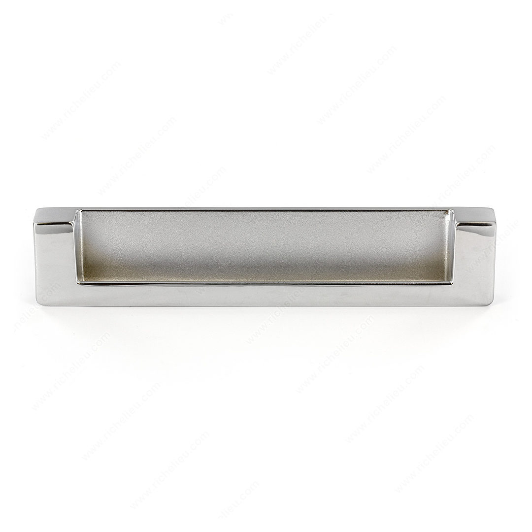 Richelieu BP897128140 Modern Recessed Metal Pull - 8971 adds an urban flair to your space with its striking design, perfectly complementing contemporary décor. Crafted from durable zamak material, this recessed pull offers both functionality and style, making it an ideal choice for modern cabinetry and furniture. With a center-to-center measurement of 5 1/32 inches, the pull provides a comfortable grip while maintaining a sleek profile. The overall dimensions include a height of 5/8 inch, a length of 5 29/32 inches, and a width of 1 5/32 inches, ensuring it fits seamlessly into your design. The chrome finish enhances its modern aesthetic, while the gray accents provide a sophisticated touch. Installation is straightforward, as it comes with included 8/32 inch screws, allowing for a quick setup. The recessed design not only saves space but also adds an elegant touch to drawers and cabinets. With a milling depth of 1 1/32 inches and projection of just 3/32 inch, this pull is designed for easy use without compromising on style. Elevate your interior with the Richelieu BP897128140-a perfect blend of modern design and practical functionality that is sure to impress.