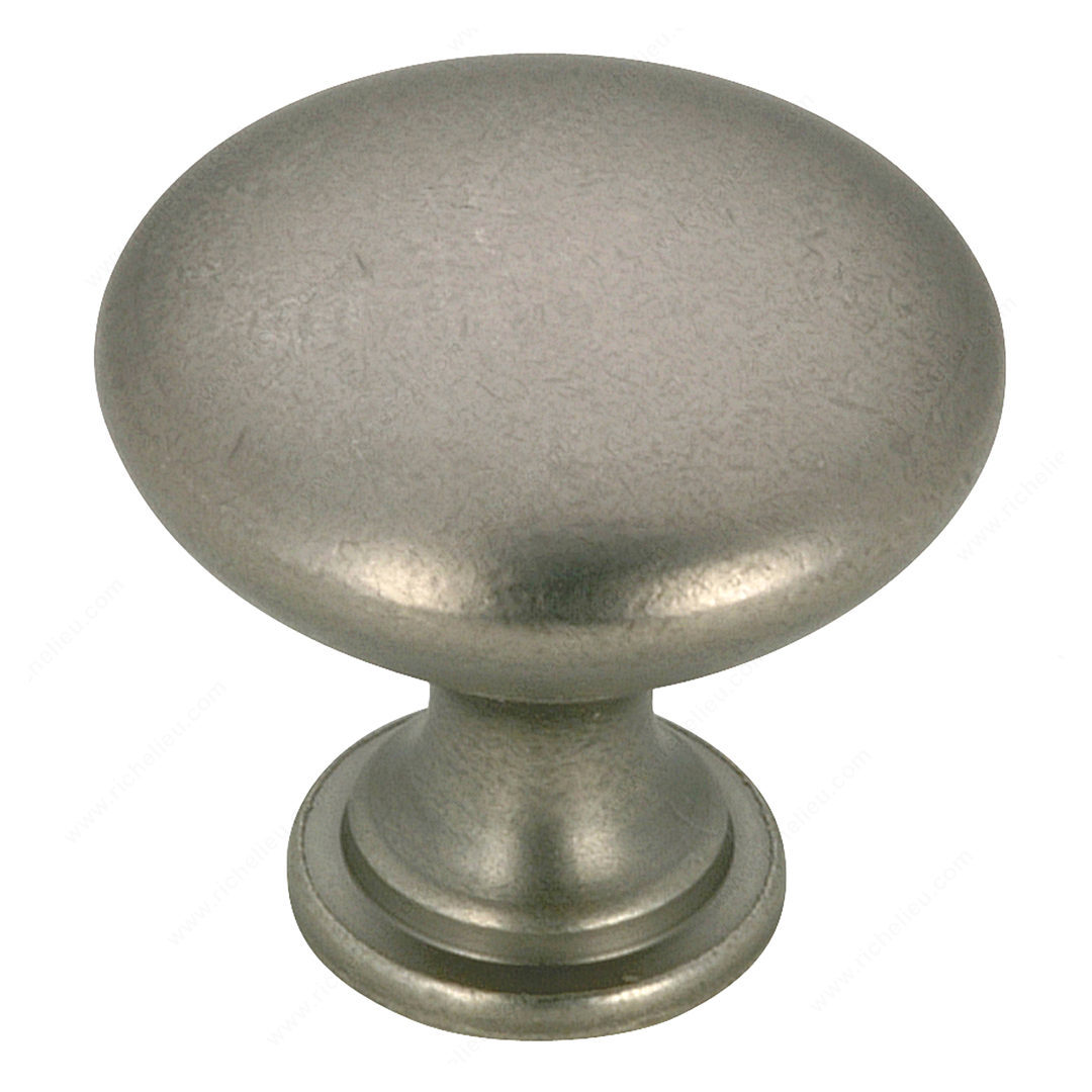 Richelieu BP9041142 Modern Metal Knob - 9041 combines sophistication and functionality, making it an ideal choice for enhancing your kitchen or bathroom décor. With a contemporary design featuring a flared base, this knob easily elevates the style of your cabinetry, offering a sleek aesthetic that complements various interior themes. Crafted from durable zamak, the knob boasts a pewter finish with a subtle gray and chrome palette, ensuring it stands out while blending seamlessly with existing fixtures. Its overall dimensions include a diameter of 1 3/16 inches and a projection of 1 3/32 inches, providing just the right grip for daily use. The base diameter is 5/8 inch, offering stability and comfort when opening drawers or cabinets. Ideal for utility applications, the knob comes packaged in a convenient bag and includes an 8/32 inch screw for easy installation. The Urban model is designed for modern living, making it a perfect addition for building professionals and discerning homeowners alike. Choose the Richelieu BP9041142 knob to add a touch of contemporary elegance to your spaces while ensuring lasting performance and style.