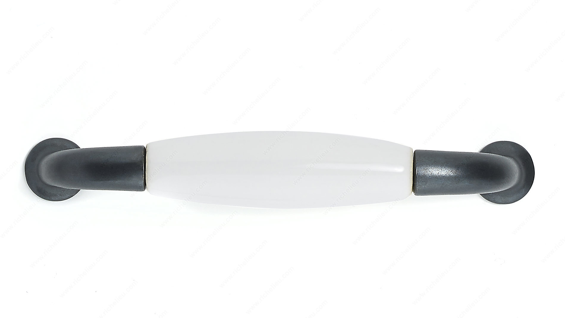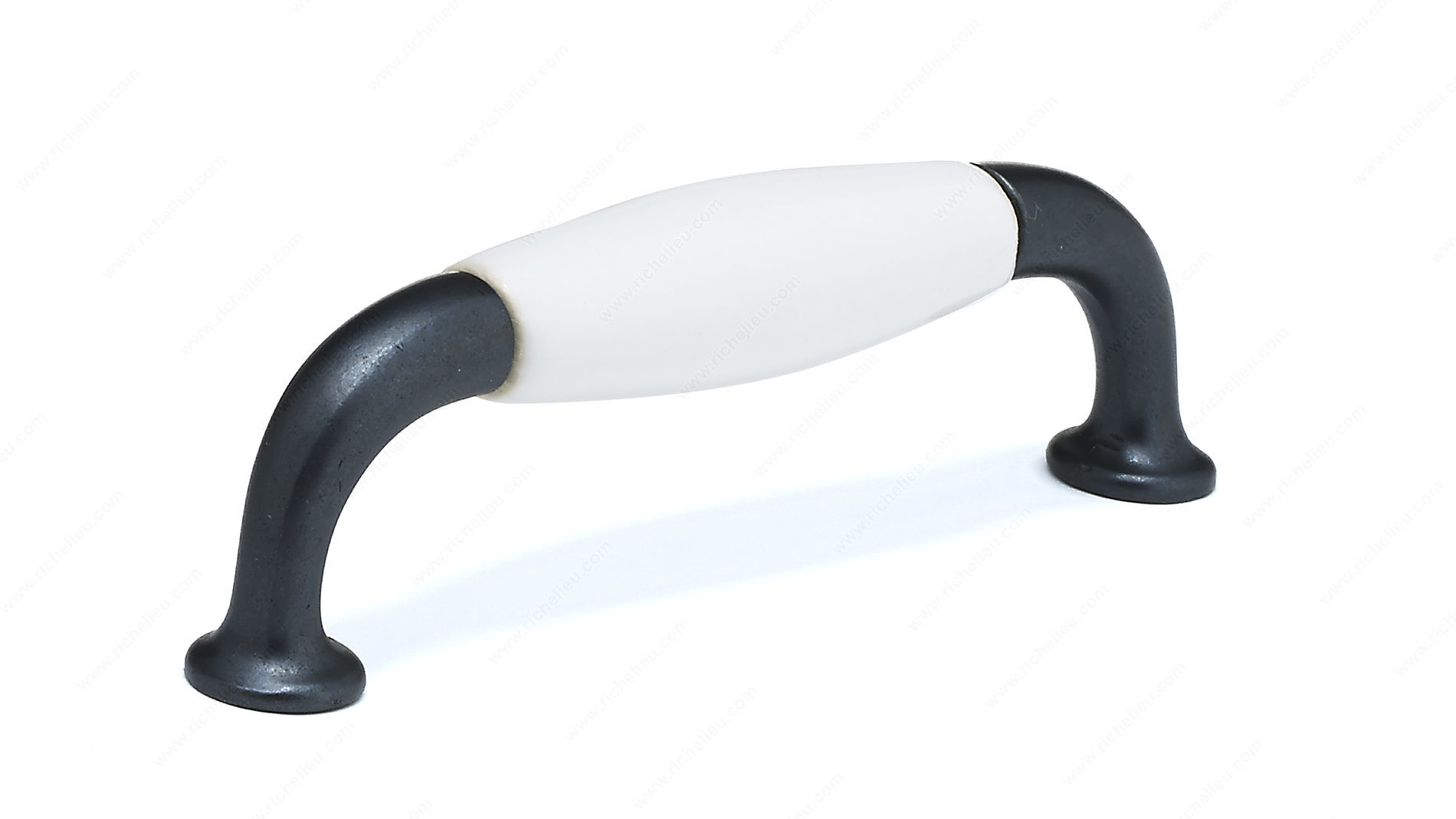 Richelieu BP970090630 Traditional Ceramic and Metal Pull - 9700 delivers a classic elegance that enhances any room's aesthetic. Crafted from a harmonious blend of metal and ceramic, this pull features traditional detailing that exudes a sense of luxury and refinement. Its overall dimensions measure 4 11/32 inches in length, with a projection of 1 5/16 inches, making it a perfect addition to cabinets, drawers, and furniture. The pull boasts a center-to-center measurement of 3 25/32 inches, ensuring compatibility with a variety of installations. Available in stylish black and white, it comes in an anthracite and white finish, specifically designed to complement a range of decor styles. The traditional design makes it an ideal choice for those looking to add a touch of sophistication to their home. Installation is straightforward, thanks to the included 8/32 inch screws, ensuring a secure fit. With its durable materials and timeless design, the Richelieu BP970090630 pull not only enhances functionality but also elevates the overall look of your interiors. Transform your space with this exquisite hardware piece that perfectly marries form and function.