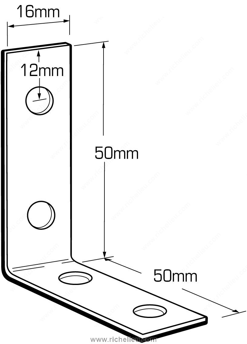 Richelieu CP2372G5 Corner Brace is an essential component for enhancing the stability and support of your projects. Designed for both indoor and outdoor applications, this corner brace is ideal for reinforcing right angles in furniture assembly, ensuring that your structures remain robust and reliable over time. Constructed from durable steel with a sleek zinc finish, the CP2372G5 offers not only strength but also an aesthetically pleasing look. Its overall dimensions measure 1 31/32 inches in height and projection, while the width is a compact 5/8 inches, making it suitable for various applications without compromising space. The brace features countersunk screw holes, allowing screws to sit flush with the surface for a cleaner appearance. Packaged in a convenient box of 100, this product is perfect for builders and DIY enthusiasts looking to stock up on essential hardware. Please note that screws or nails are not included, providing you the flexibility to choose the best fasteners for your specific needs. Whether you're working on furniture projects or other structural reinforcements, the Richelieu CP2372G5 Corner Brace ensures that your work stands the test of time with added peace of mind.