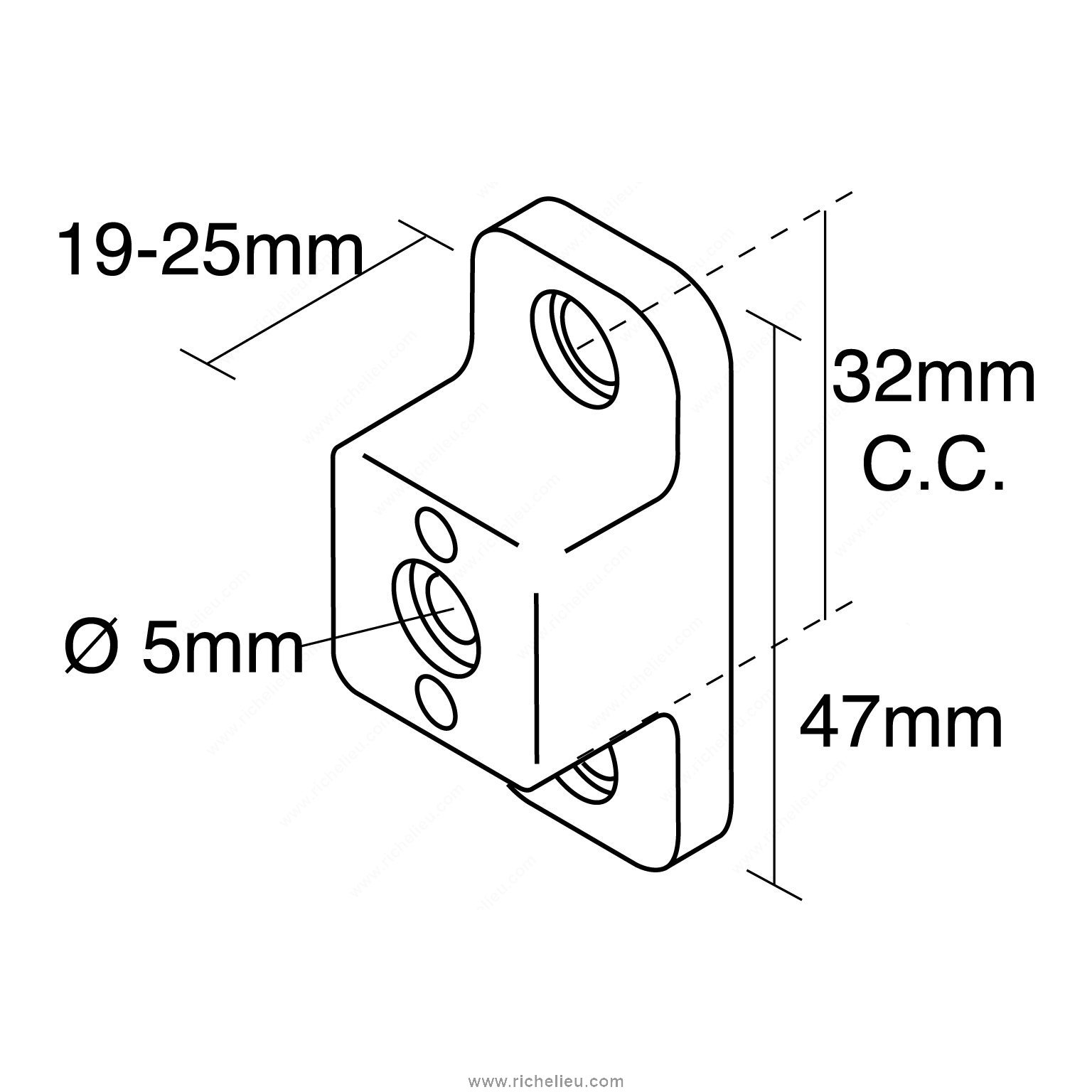 Richelieu CP60275012 Side Spacer - 19 mm is designed to provide reliable support and alignment by being fixed to the body sides and the guide rail. Crafted from durable polyamide (PA6), this spacer ensures long-lasting performance in various applications. With its screw-on installation type, the CP60275012 allows for quick and straightforward setup, making it an ideal choice for both professionals and knowledgeable homeowners. Measuring 1 27/32 in length, 25/32 in width, and a depth of 3/4 in, this side spacer is specifically engineered to accommodate a Euro countersunk head screw with a diameter of 6.3 mm. The length of the screw can be adjusted based on wall thickness, slide spacer depth, and slide requirements, providing flexibility for different projects. Offered in a clean white finish, the CP60275012 blends seamlessly with a variety of décor styles. Each package contains 100 units, making it a cost-effective solution for larger installations or renovations. Whether you are working on cabinetry, furniture, or other custom projects, Richelieu's side spacer will enhance the structural integrity and functionality of your designs.