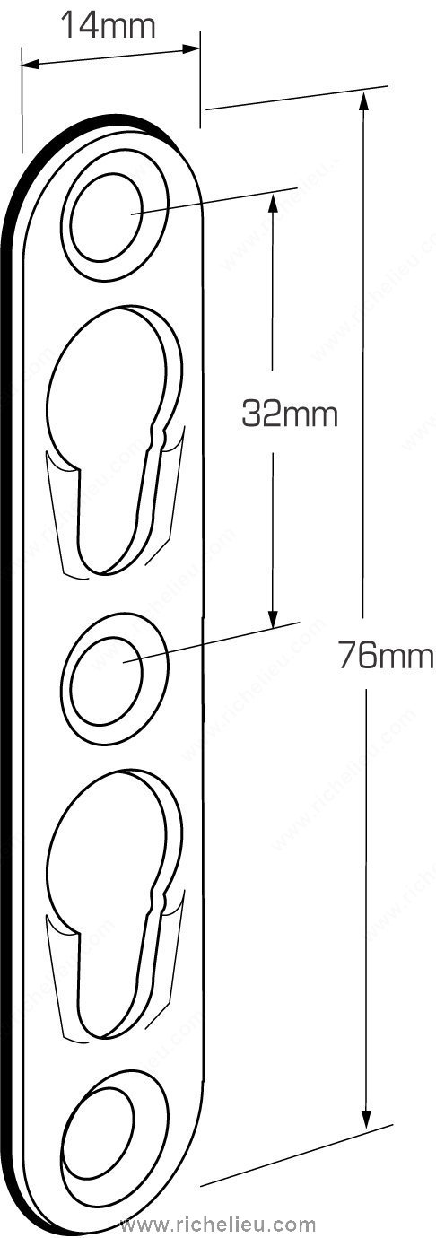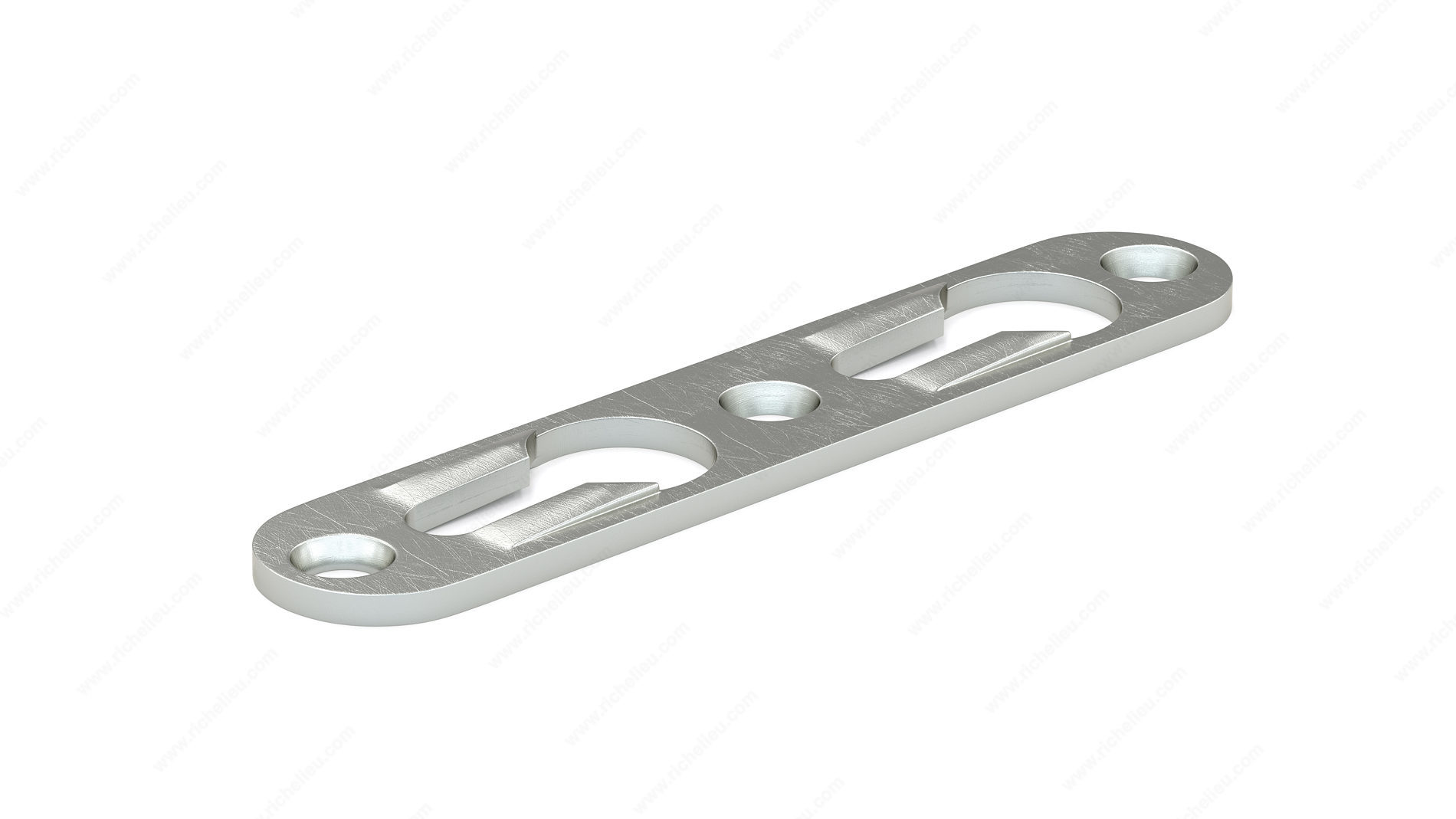Richelieu CP78322G Mending Plate - Double Lock offers a reliable solution for assembling small interior hardware frames with ease and durability. Constructed from heavy-gauge steel, this assembly plate ensures a secure connection, making it ideal for various furniture assembly applications. With a length of 3 inches and a width of 9/16 inches, it provides ample surface area for effective reinforcement. The mending plate features a thickness of 3/32 inches, allowing for a sturdy yet discreet installation. Its center-to-center measurement of 1 1/4 inches ensures compatibility with #5 flat head screws, providing straightforward installation. Finished in a sleek zinc coating, the plate not only enhances durability against wear but also adds a touch of professionalism to your projects. Packaged in bags of 100 units, the Richelieu CP78322G Mending Plate is perfect for both large-scale applications and smaller, DIY projects. While screws are not included, the versatility of the mending plate makes it an essential addition to any builder or homeowner's toolkit. Choose Richelieu for trusted quality and performance in your furniture assembly needs.