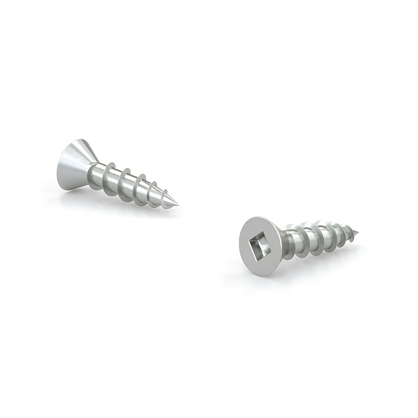 Zinc-Plated Wood Screw, Flat head, Square Drive, Coarse Thread, Regular Wood Point