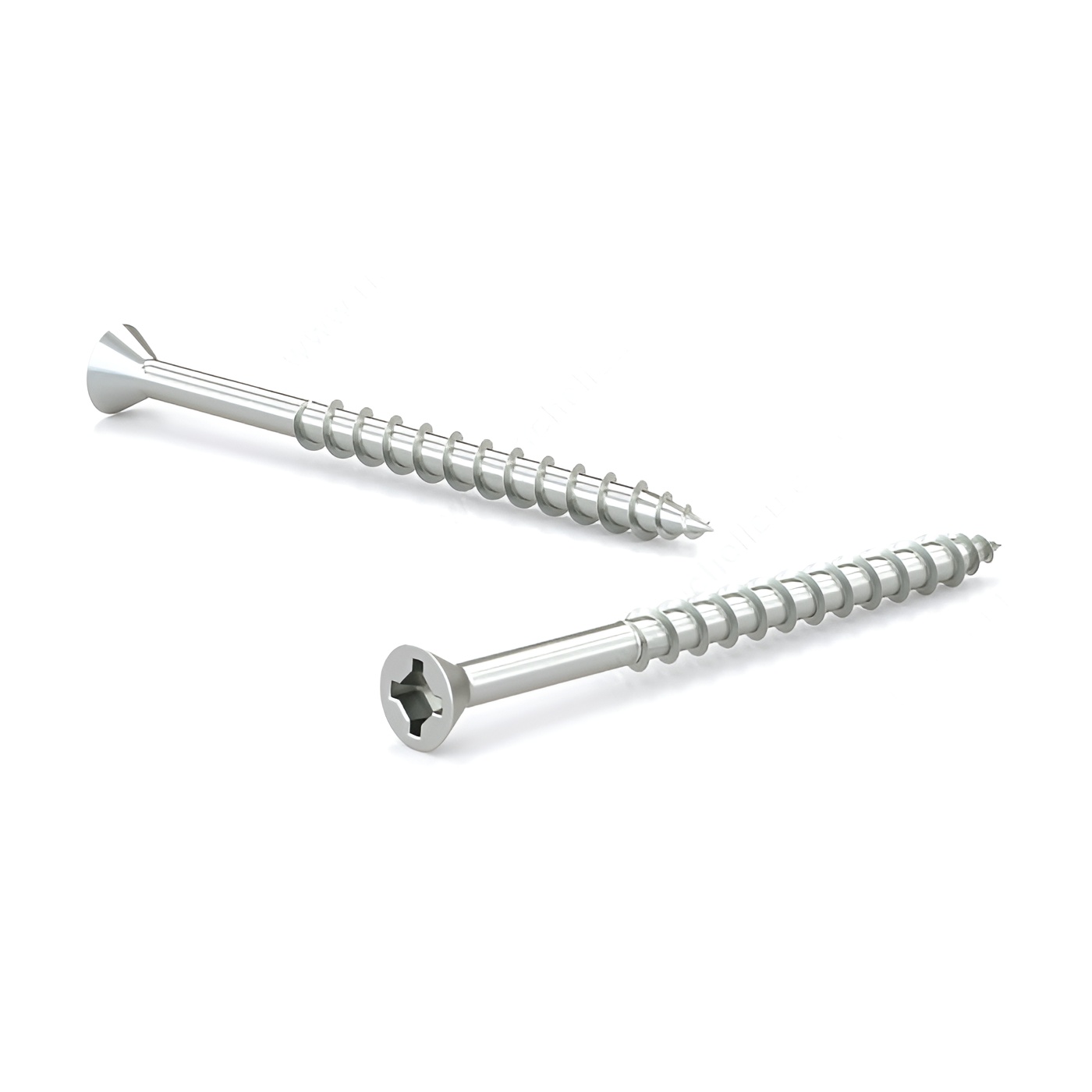 Zinc-Plated Wood Screw, Flat Head, Quadrex Drive, Coarse Thread, Regular Wood Point