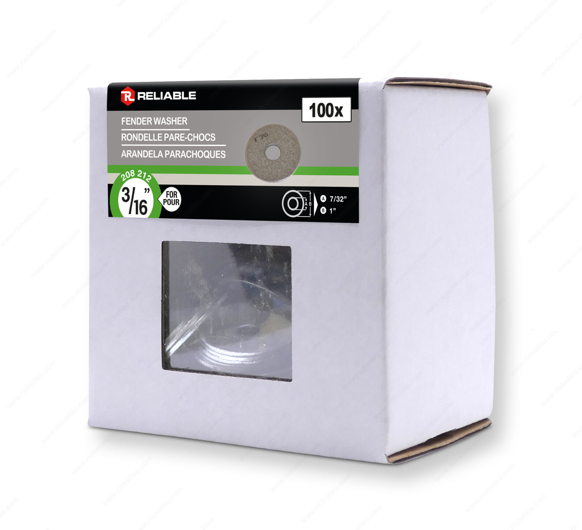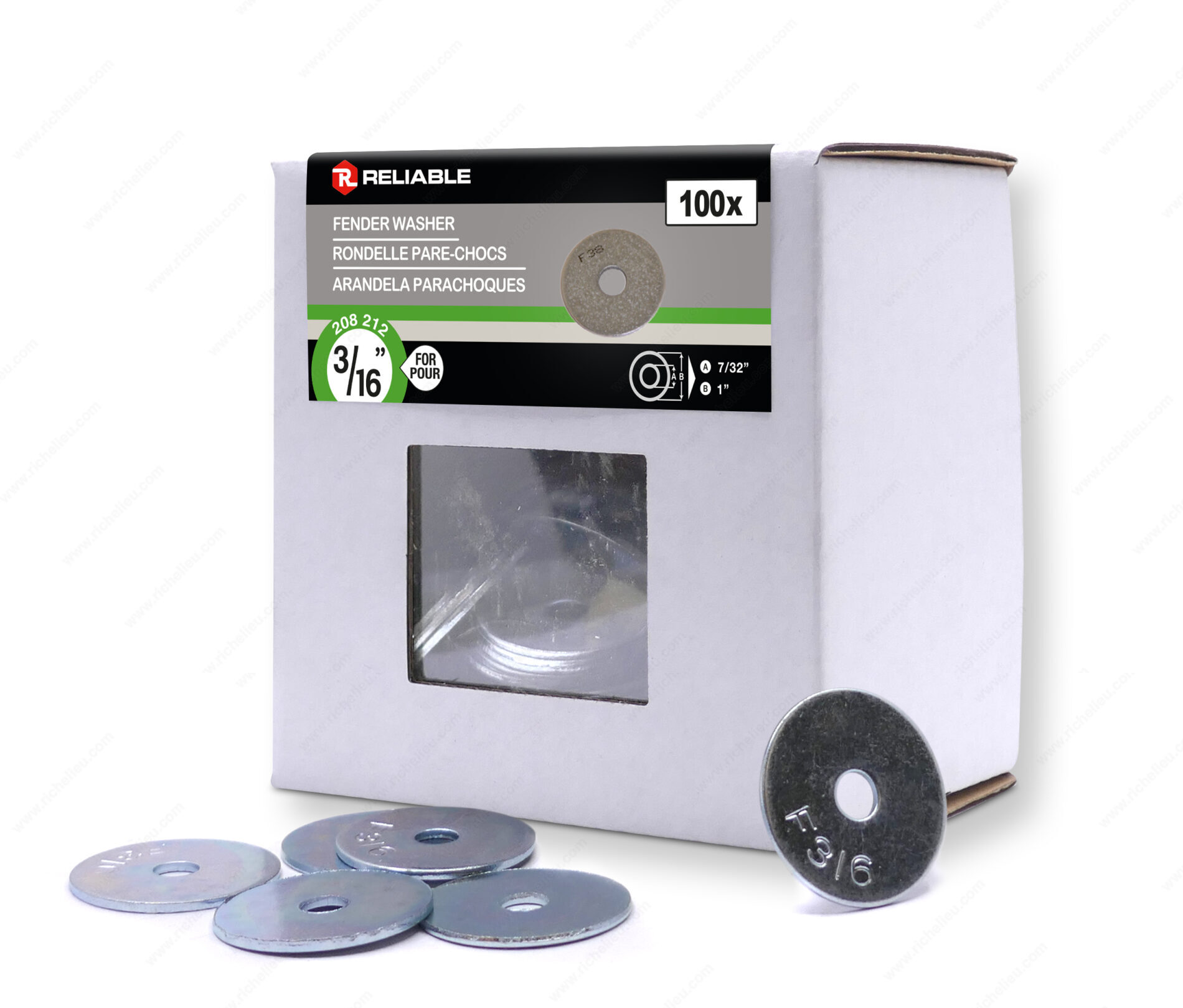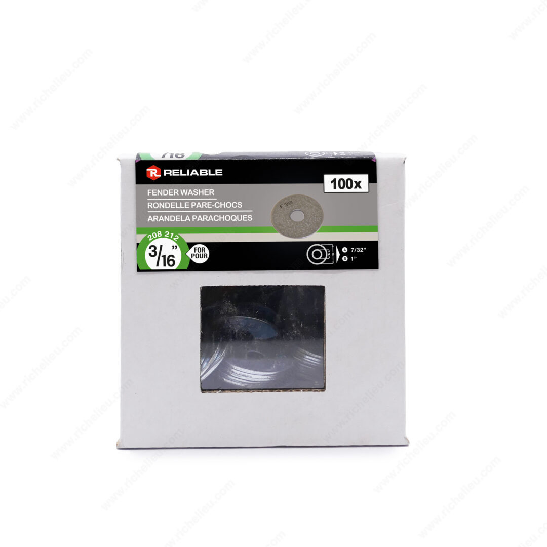Richelieu FWZ316VP Fender Washer - Zinc offers a robust solution for applications requiring enhanced load distribution. Crafted from durable zinc-finished steel, these fender washers feature a larger outer diameter that significantly enlarges the contact area between materials. This design attribute effectively decreases the exerted pressure on the surfaces, making them ideal for various construction and repair tasks. Designed for a bolt diameter of 3/16 inch, the washers have an inside diameter ranging from 7/32 to 15/64 inches, ensuring compatibility with standard fittings. With an outside diameter of 1 to 1 1/64 inches and a thickness between 3/64 to 1/16 inch, these shock-absorbent washers provide reliable performance under stress. Packaged in a convenient box of 100, the FWZ316VP washers are easy to store and transport, making them a practical choice for both professionals and DIY enthusiasts. Their zinc finish not only enhances their durability but also provides resistance against corrosion, ensuring longevity in various environments. For projects that demand precision and reliability, Richelieu’s fender washers are an essential addition to your toolkit. Trust in their quality and performance to achieve the best results in your construction or renovation projects.