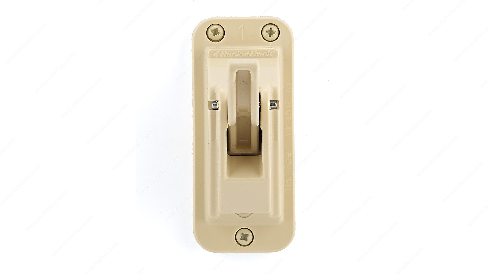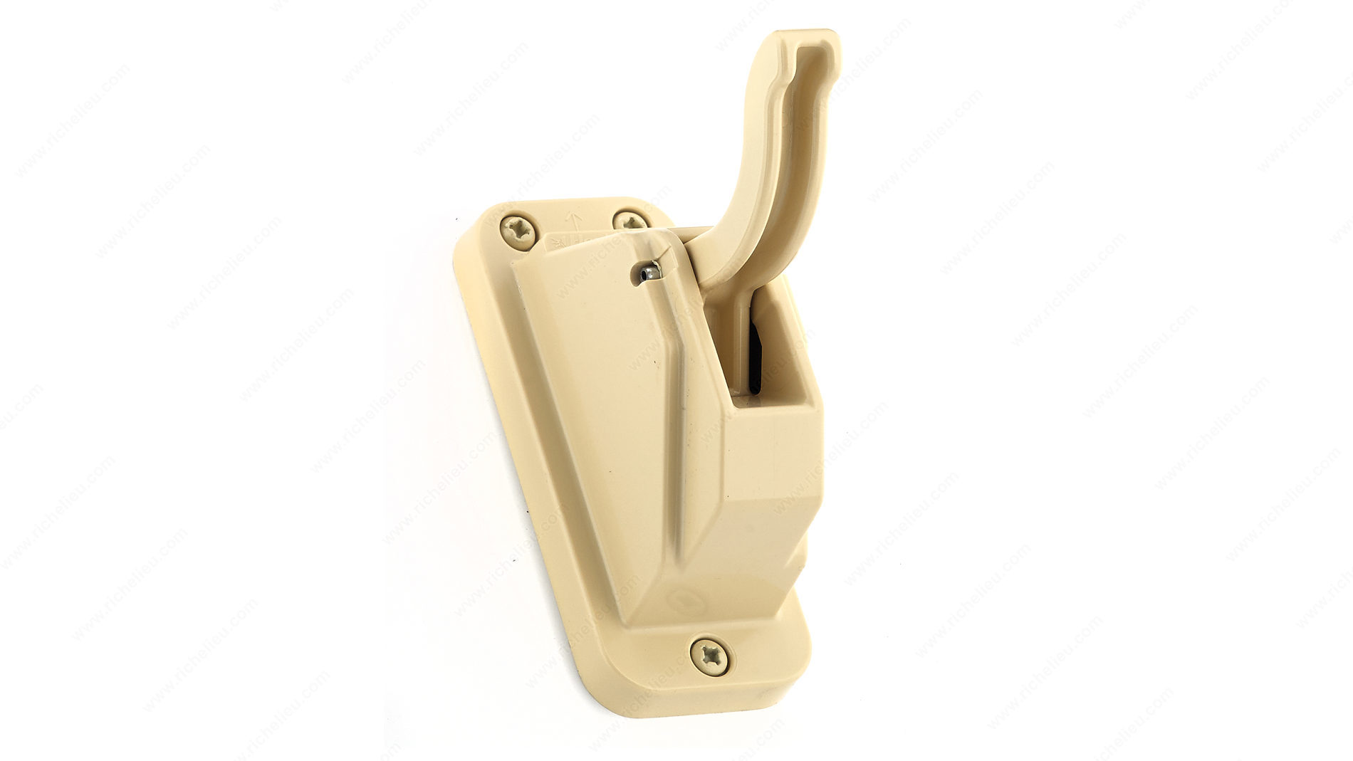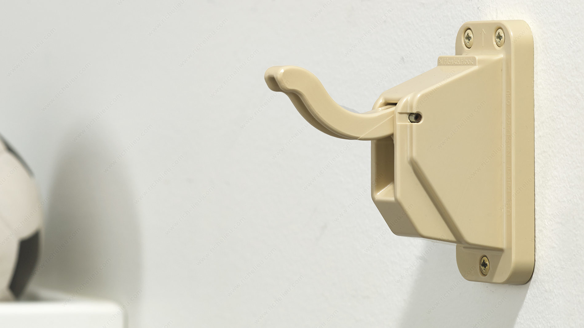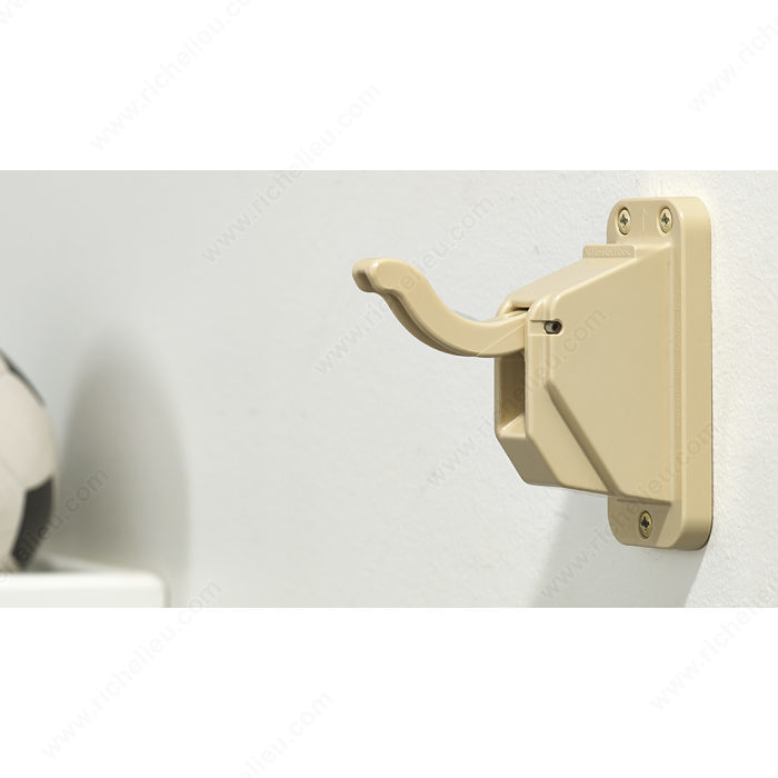 Richelieu HDB002IP Safety Hook - HD is a versatile and secure solution for hanging various items, designed with safety and practicality in mind. This tamper-proof hook releases when the weight exceeds 26 lb, ensuring that your belongings are safely suspended until the limit is reached. When the weight limit is surpassed, the hook automatically releases, allowing the item to fall safely, which is ideal for environments with children or frequent use. Constructed from durable plastic, the hook is both lightweight and strong, supporting items up to 26.5 lb. Its overall dimensions measure 3 3/4 inches in height and projection, with a width of 1 5/8 inches. Available in a beige finish, the HDB002IP blends seamlessly into a variety of settings, making it perfect for schools, daycares, fitness facilities, and residential spaces. Installation is straightforward, as screws are included, allowing for quick setup in any location. The hook's child-friendly design ensures peace of mind, making it an excellent choice for both home and professional use. With color options in green, blue, and beige, the Richelieu HDB002IP Safety Hook is not just functional but also aesthetically pleasing.