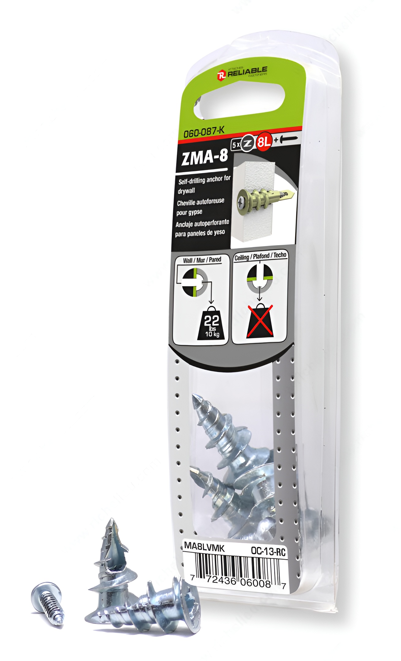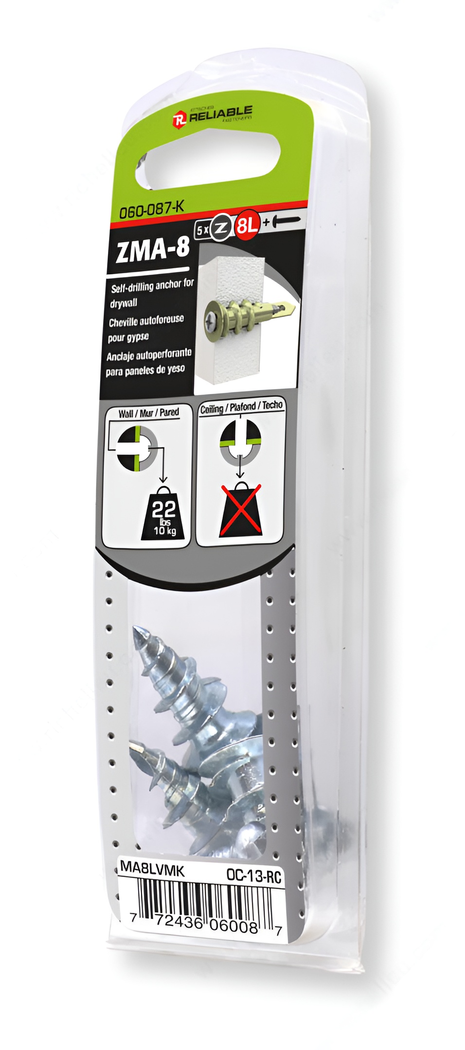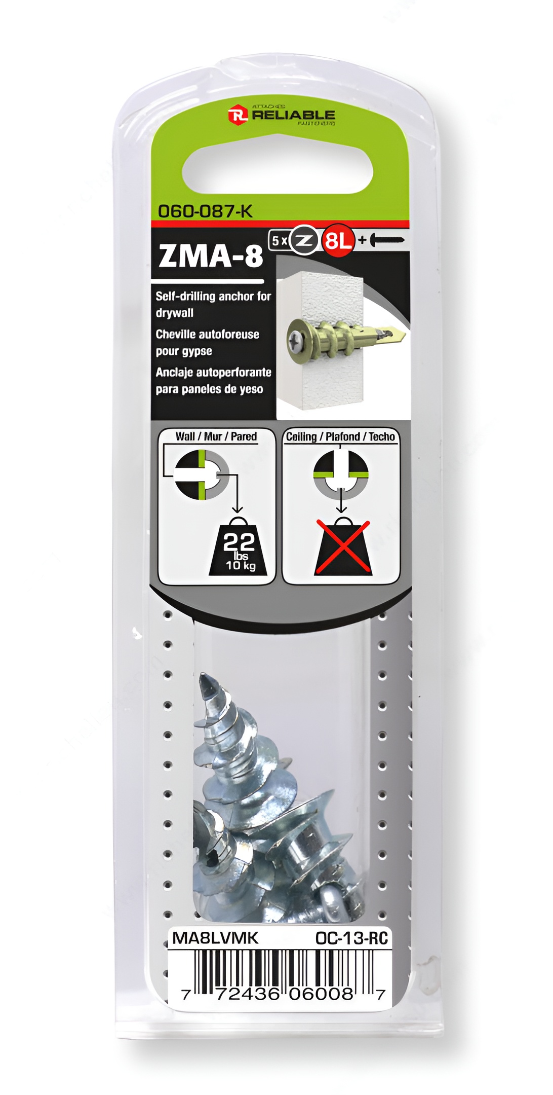Richelieu MA8LVMK Metal Self-Drilling Anchor for Drywall is engineered to provide exceptional holding power and stability, making it an essential choice for wall-mounted applications. This innovative self-drilling anchor features a sharp edge that easily penetrates drywall, minimizing damage while reducing the effort needed to install. With a fine point for precise guidance, the MA8LVMK ensures flawless installation every time. Designed for convenience, these anchors can be effortlessly installed using a standard screwdriver without the need for pre-drilling, making them ideal for both professionals and DIY enthusiasts. Each anchor supports an impressive load capacity of up to 22 pounds, making them suitable for a variety of wall-mounted fixtures. The anchors come in a blister pack of five units, complete with #8 screws included for quick and easy setup. Finished in durable zinc, the MA8LVMK anchors not only offer robust performance but also resist corrosion, ensuring longevity in any environment. Whether you’re hanging shelves, frames, or other decorative items on drywall, Richelieu’s self-drilling anchor is the reliable solution that guarantees stability and peace of mind. Choose the MA8LVMK for your next project and experience the ease of effective anchoring.