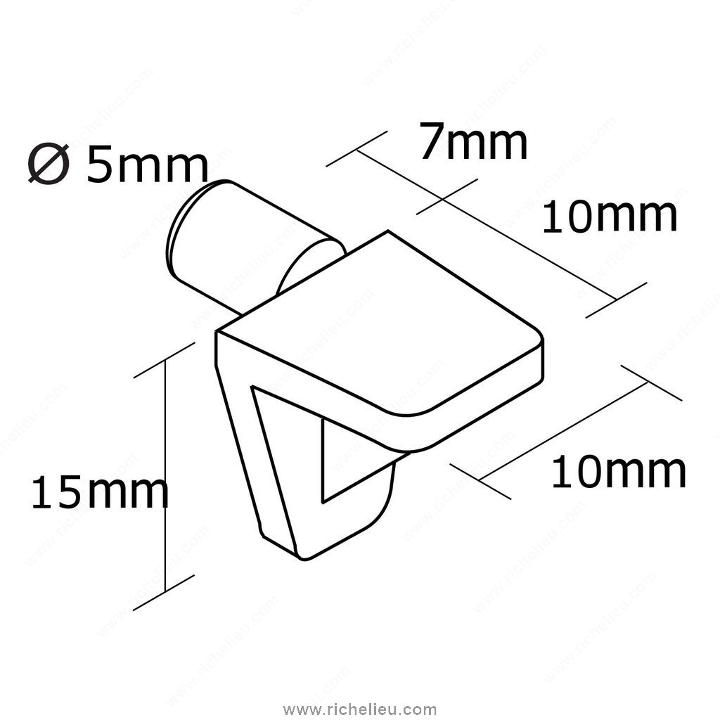 Richelieu MP34001030 Plastic Shelf Pin offers a robust solution tailored to meet your storage requirements. Crafted from durable polycarbonate, this shelf pin ensures reliable support for your shelves, making it an essential component for any furniture project. With a sleek white finish, it not only blends seamlessly with various décors but also provides a visible touch of professionalism. Designed for optimal performance, the MP34001030 features a drilling diameter of 3/16 inches, accommodating shelves with a minimum thickness of 5/8 inches. Each pin can support up to 44.1 pounds, allowing you to confidently store books, kitchenware, or decorative items without worry. The overall dimensions include a height of 19/32 inches and a projection of 13/32 inches, ensuring a compact yet effective design. Packaged in convenient bags of 1000 units, this product is ideal for contractors and DIY enthusiasts alike, allowing for ample supply for multiple projects. Whether you are outfitting a kitchen, a home office, or a retail space, the Richelieu MP34001030 Plastic Shelf Pin is the dependable choice for enhancing your shelving systems. With the ability to ship via UPS, rest assured that you can quickly receive this essential accessory to complete your designs.