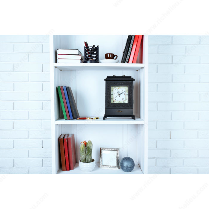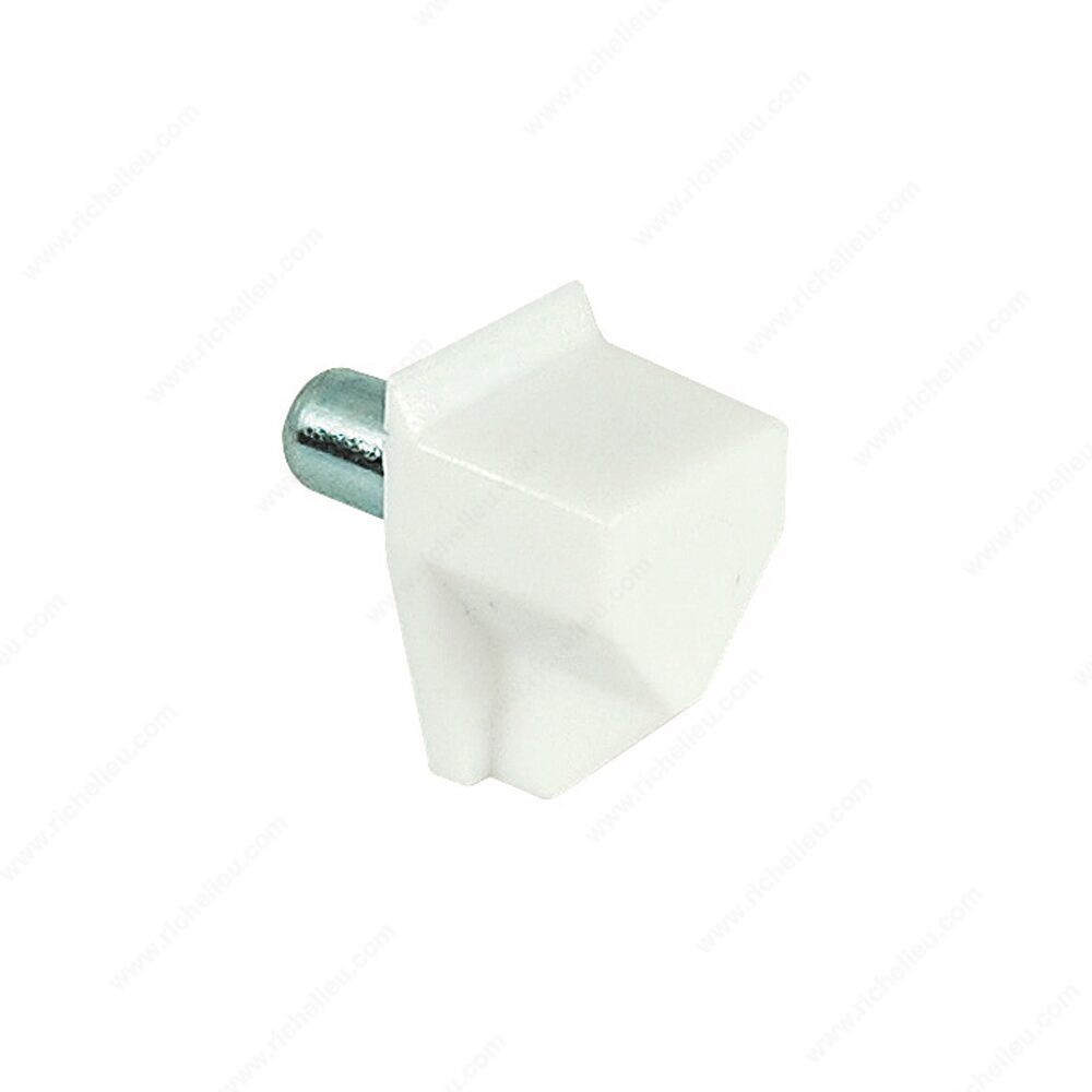 Richelieu MP34004030 Plastic Shelf Support with Steel Pin - 5 mm offers a reliable solution for organizing shelves in a variety of settings, including closets, entertainment centers, kitchens, and bathroom cabinets. This easy-to-install shelf support allows you to simply push the shelf pins into pre-drilled holes at each end of the shelf, ensuring a secure and stable installation. Crafted from durable plastic, these shelf supports are designed to hold up to 176 pounds per shelf, providing ample support for your organizational needs. With a drilling diameter of 3/16 inches, they accommodate shelves with a minimum thickness of 5/8 inches, making them versatile enough for various applications. The overall height of each support measures 21/32 inches, and the width and projection are both 13/32 inches, allowing them to fit seamlessly into your cabinetry. The Richelieu MP34004030 supports come packaged in a convenient bag of 1000 units, ensuring you have enough for multiple projects. Finished in white, they provide a clean, modern look that is visible yet unobtrusive. Choose these shelf supports for a professional-grade solution that enhances both functionality and aesthetics in your home or workspace.