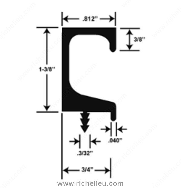 Richelieu MRBNYM126VC Modern Handle for 3/4 in Panel - 126 and 319 combines sleek design with functional excellence, making it an ideal choice for contemporary spaces. Crafted from high-quality anodized aluminum, this handle features a satin aluminum finish that enhances its durability while providing a sophisticated aesthetic. With an overall length of 12 ft and a width of 13/16 in, it is perfectly suited for panels with a thickness of 3/4 in, ensuring a seamless integration into your cabinetry. The handle's unique gray and chrome color palette adds a modern touch, while its 2 1/8 in projection offers comfortable grip and usability. The visible height of 1 3/8 in makes it an eye-catching addition, as it stands out without overpowering the surrounding decor. Designed for ease of installation, this handle is compatible with aluminum and wood profiles, making it versatile for various applications. The 3/32 in barb thickness and 3/4 in depth of groove ensure a secure fit, enhancing the longevity of your installations. Please note that shipping is exclusively via common carrier, not UPS, ensuring safe delivery of this essential hardware. Upgrade your cabinetry with the Richelieu MRBNYM126VC Modern Handle for a blend of style and functionality.