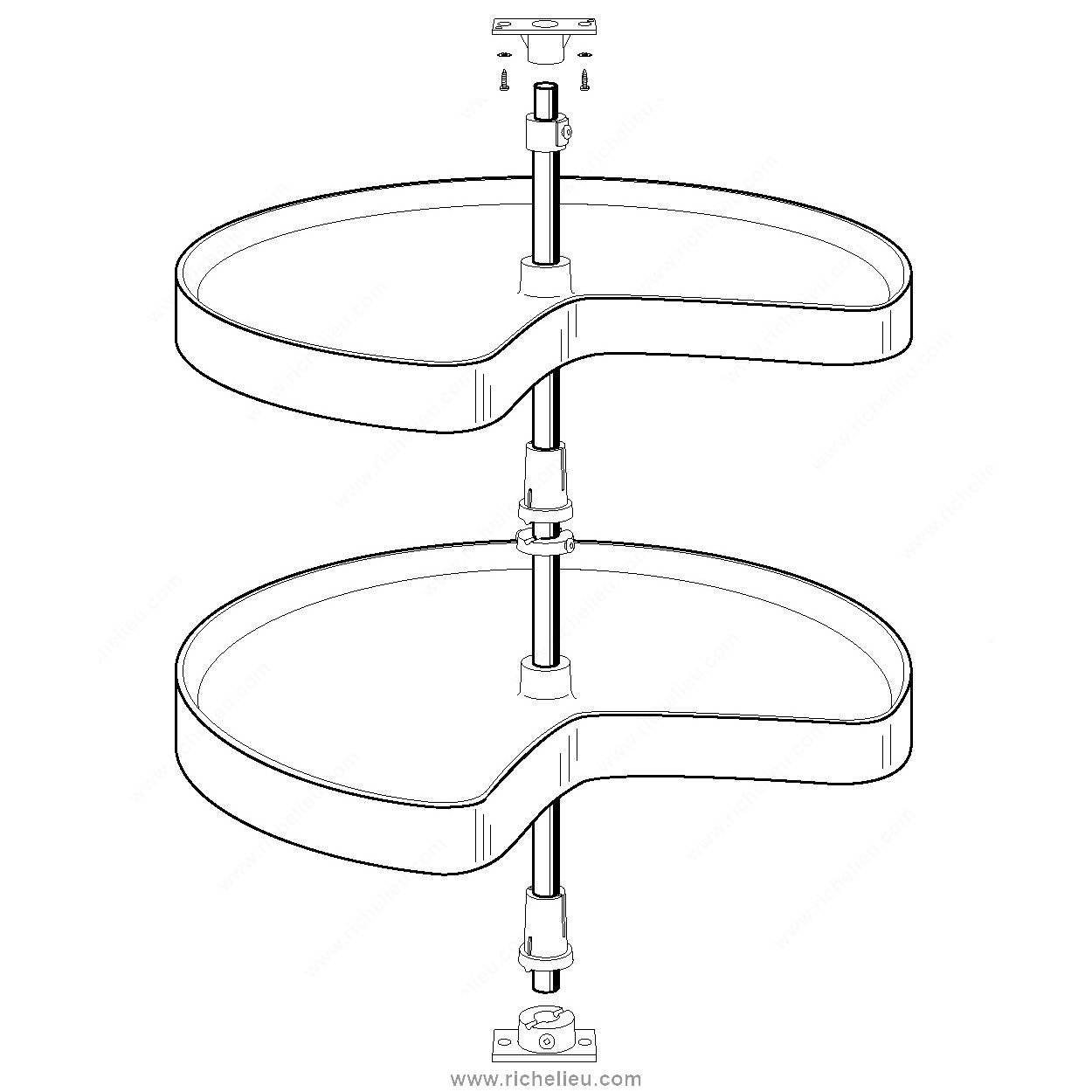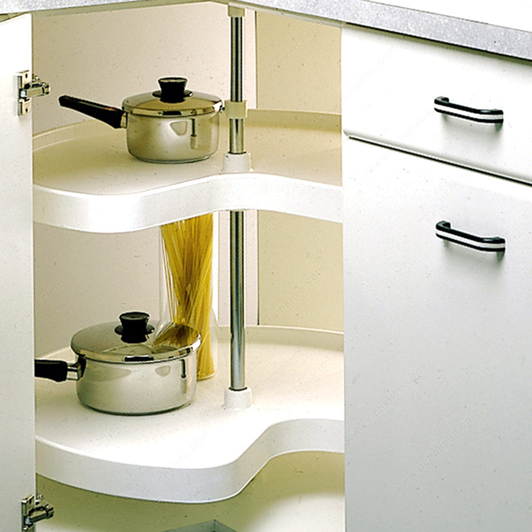 Richelieu P24K30 Lazy Susan 3/4 Swiveling Trays offer a practical and economical solution for maximizing storage efficiency in your kitchen. Designed specifically for corner cabinets, these trays provide easy access to your food storage and preparation items, ensuring that you can reach everything effortlessly. Crafted from durable polypropylene, the trays are built to last while supporting a substantial capacity of up to 35 lbs per tray. With a generous diameter of 24 inches, the two trays allow for ample space to organize your essentials. The sleek white finish complements a variety of kitchen designs, adding a clean and modern touch. To accommodate different cabinet sizes, the P24K30 trays require an interior height of 23 to 32 inches, making them versatile for various setups. These trays can be shipped conveniently via UPS, ensuring a smooth delivery process. Enhance your kitchen's functionality with Richelieu's Lazy Susan trays, designed to streamline storage while maintaining a stylish appearance. Whether you are a building professional or a knowledgeable homeowner, these trays will surely meet your needs for accessibility and organization in your kitchen space.