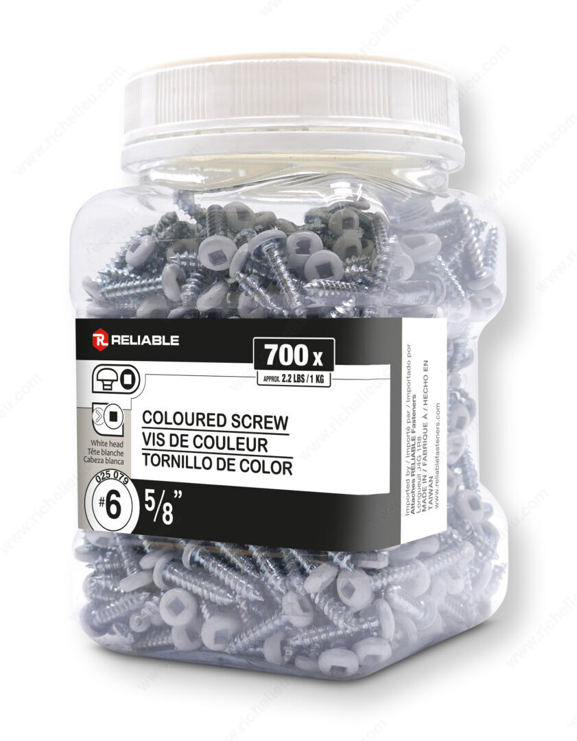Richelieu PKAW658J Metal Screw, Colored Pan Head, Square Drive, Self-Tapping Thread, Type A Point offers a robust solution for various construction and renovation projects. Crafted from durable steel, these screws are designed to ensure longevity and reliable performance, making them ideal for applications in fascia, aluminum soffit, and vinyl siding. The screws feature a white-painted pan head that seamlessly blends with your materials, enhancing aesthetic appeal while maintaining functionality. With a convenient square drive, they can be easily secured without the hassle of slippage, ensuring a smooth installation process. The sharp Type A point and self-tapping thread allow for quick and efficient installation, eliminating the need for pre-drilling. Each screw measures 5/8 inch in length and is classified as a size 6 screw, with a thread count of 18, making it versatile for various applications. Packaged in a box of 700, these screws are a practical choice for both professionals and DIY enthusiasts looking to stock up on essential hardware. Trust in Richelieu’s commitment to quality and performance with the PKAW658J metal screws for your next project.
