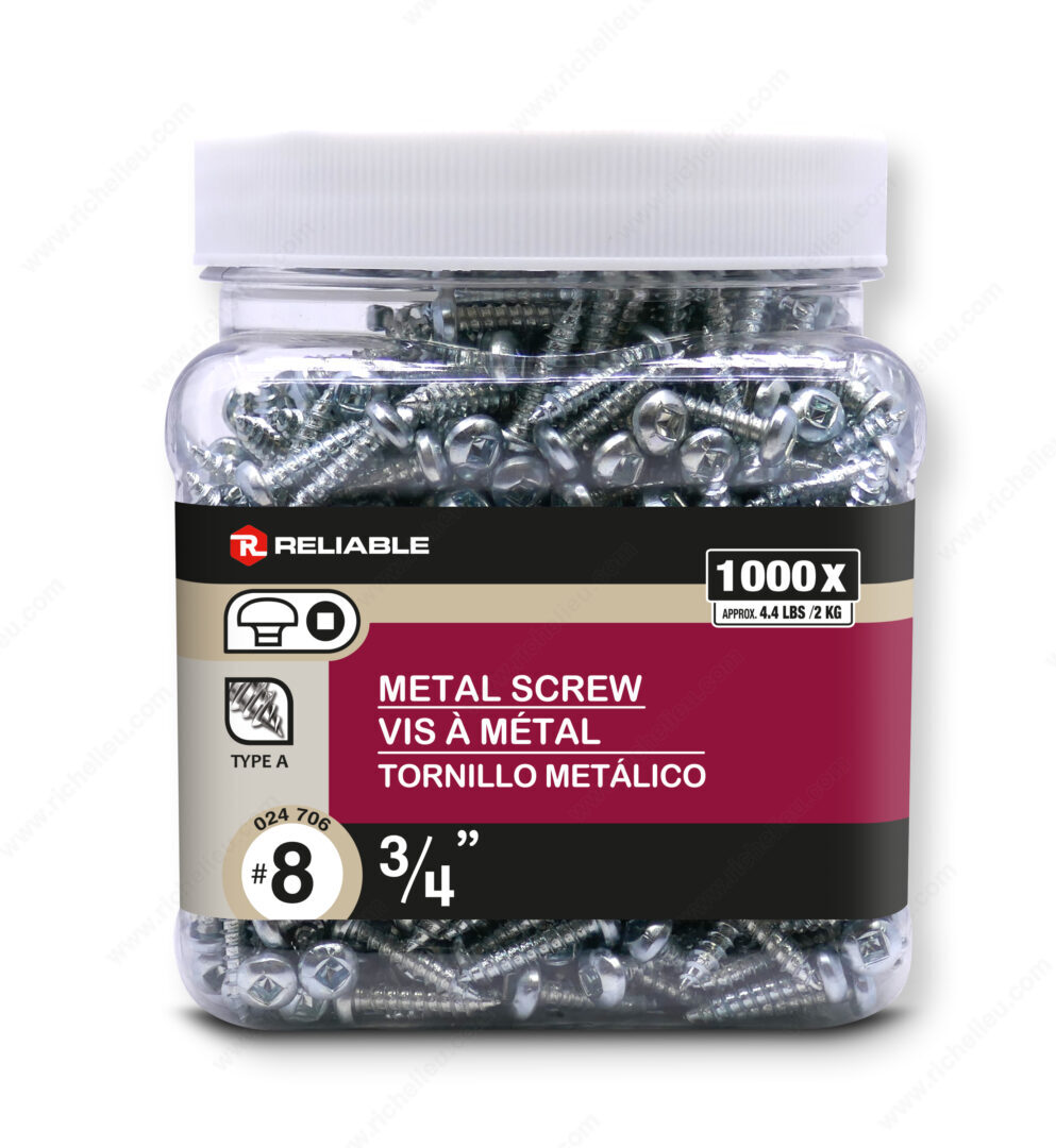 Richelieu PKAZ834J Zinc Plated Metal Screw is designed to deliver outstanding performance for both professional and home projects. Each screw is constructed from durable zinc-plated steel, ensuring longevity and reliability in various applications. The pan head design facilitates straightforward installation, while the square drive allows for efficient use of #2 square drivers, enhancing grip and reducing slippage. With a sharp Type A point and self-tapping thread, these screws eliminate the need for pre-drilling, making them versatile for use in wood, plastic, metal, and more. The full-thread design and a thread count of 15 provide a secure hold in diverse materials, making them ideal for a wide range of applications. Packaged in a convenient box of 1000, the Richelieu PKAZ834J screws are perfect for contractors and DIY enthusiasts looking for quality and quantity. Their 3/4 inch length and robust construction mean they can handle demanding tasks while maintaining performance. Whether you’re tackling a renovation or routine repairs, these screws are a reliable choice that delivers ease of use and dependable strength. Choose Richelieu for your next project and experience the difference in quality and performance.
