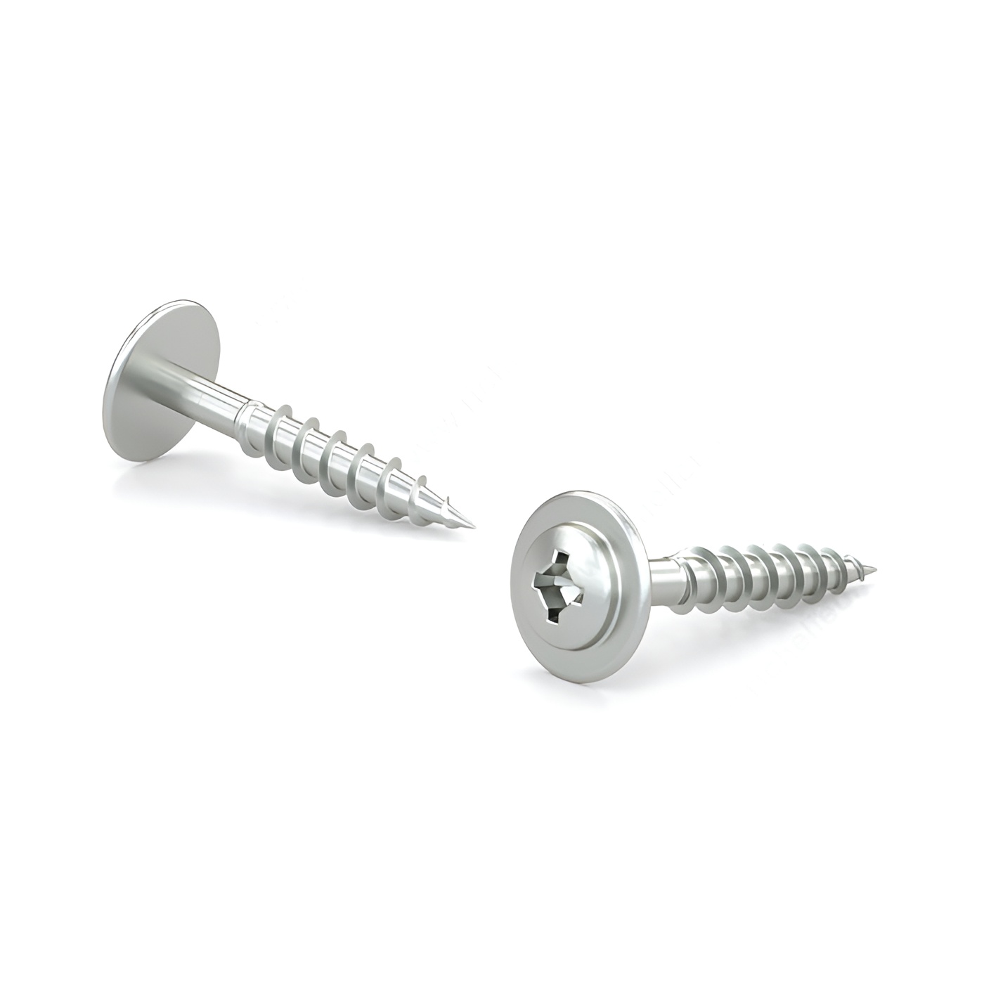 Zinc-Plated Wood Screw, Pan Head with Large Washer, Quadrex Drive, Coarse Thread, Regular Wood Point