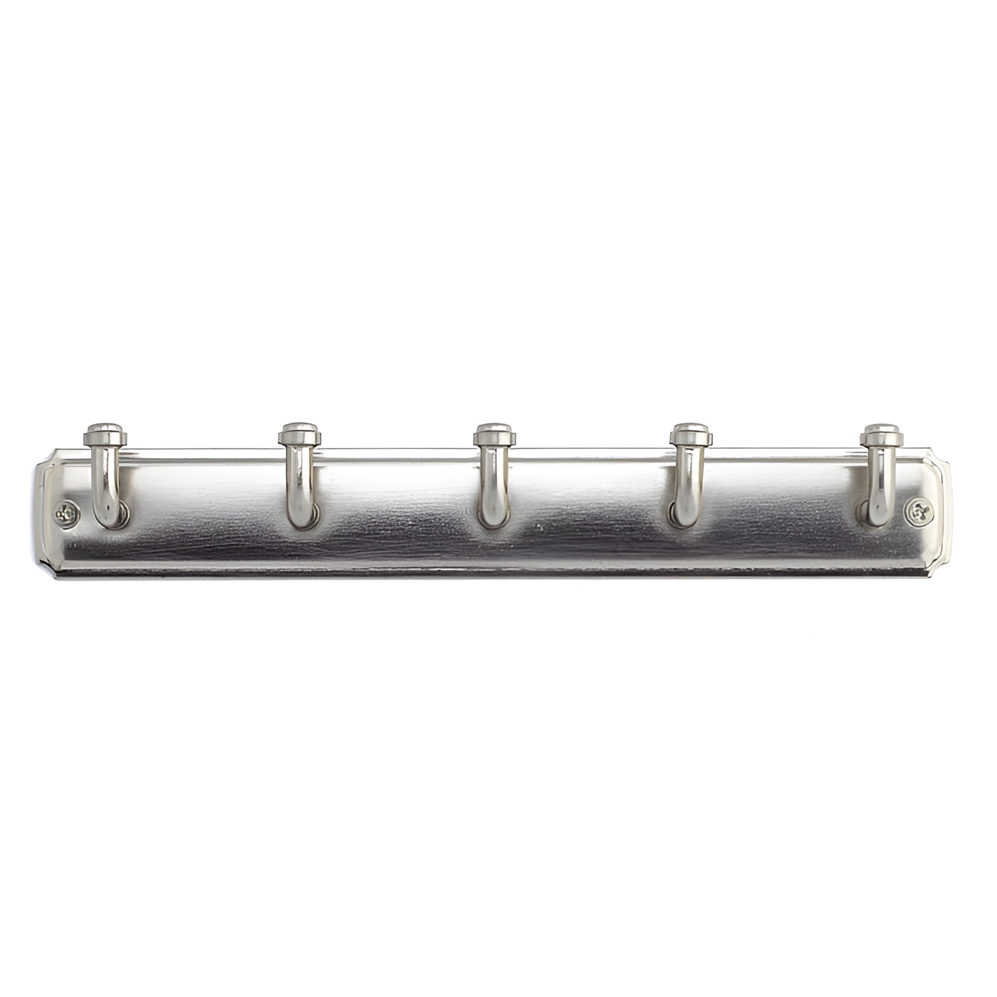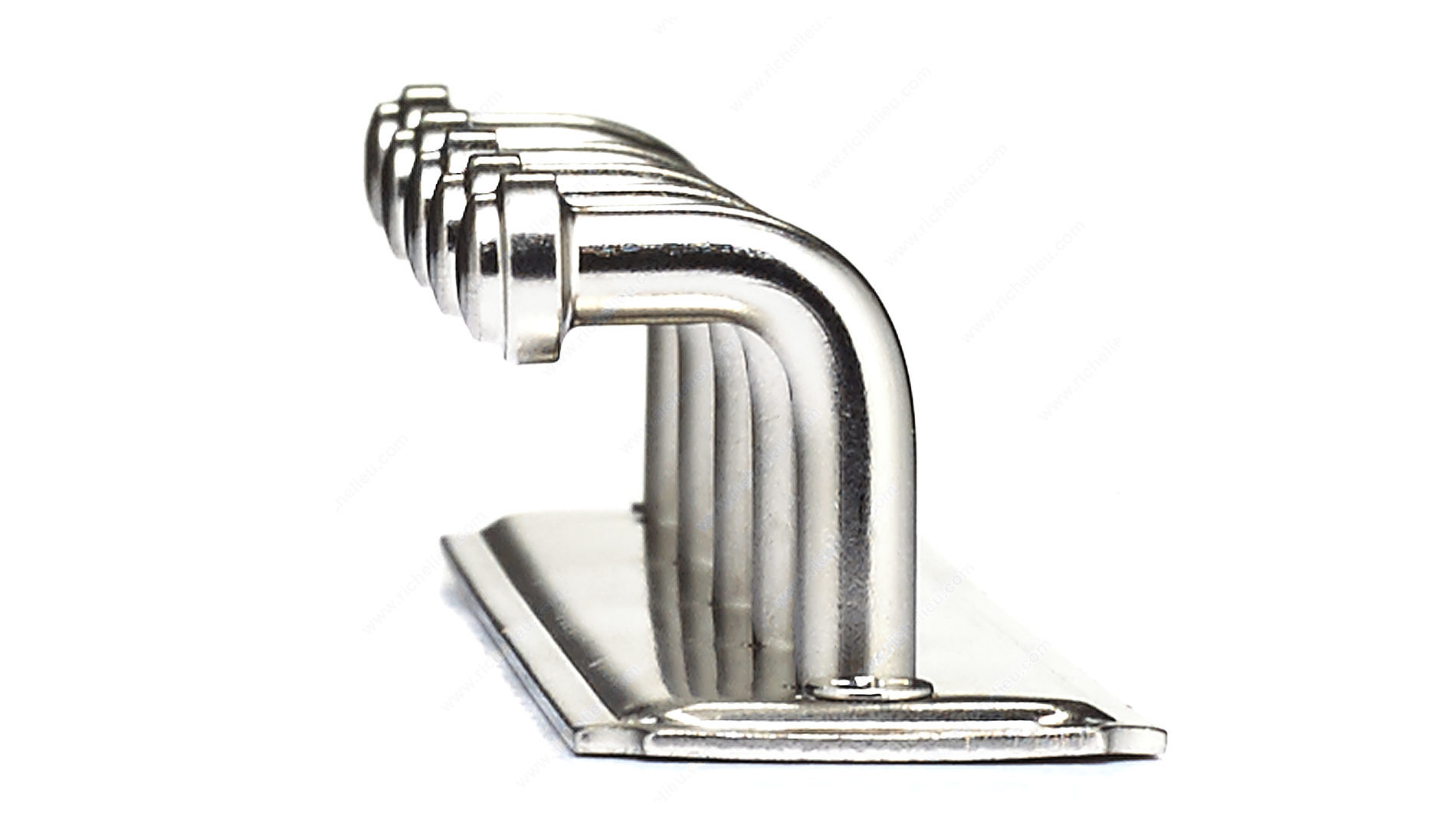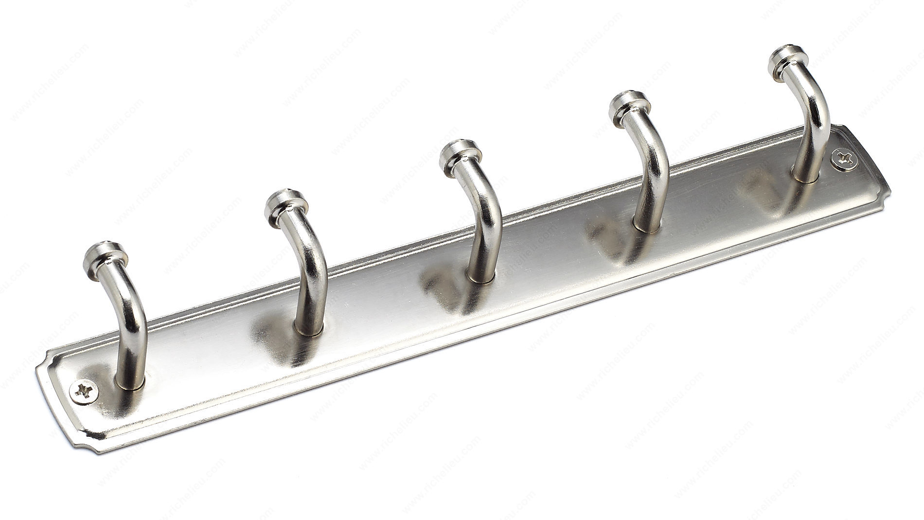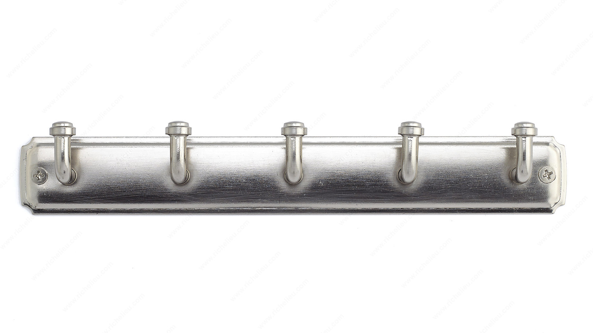 Richelieu RH1342155195 Utility Key Hook - 1342 offers a sleek and modern solution for organizing your entryway. This keychain hook is designed to blend seamlessly with contemporary home aesthetics, adding both functionality and style to your space. Finished in a sophisticated brushed nickel, it features a striking gray and chrome color combination that enhances any decor. With overall dimensions of 1 13/32 inches in height, 1 5/16 inches in projection, and a width of 8 1/2 inches, this utility hook is compact yet robust, making it an ideal choice for smaller spaces. The multiple hook style accommodates various keys and accessories, while its impressive load capacity of 4.41 pounds ensures reliable support for everyday items. Crafted from durable metal, the Richelieu Utility Key Hook is not only built to last but also easy to install, with screws and nails included for your convenience. Whether you're looking to declutter your hallway or add a stylish touch to your entrance, this key hook is the perfect blend of practicality and modern design. Elevate your organization efforts with this essential accessory that combines elegance and utility effortlessly.