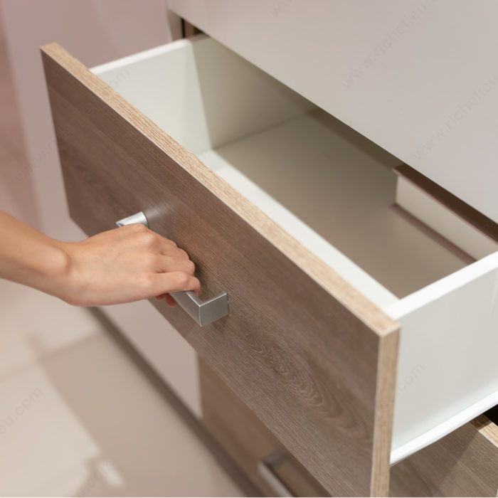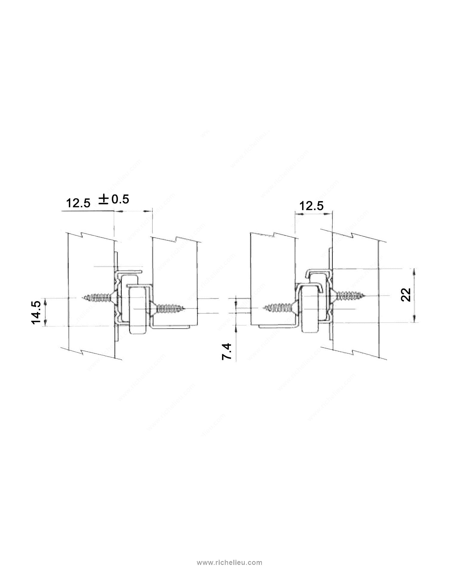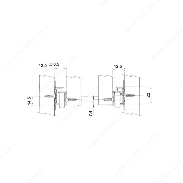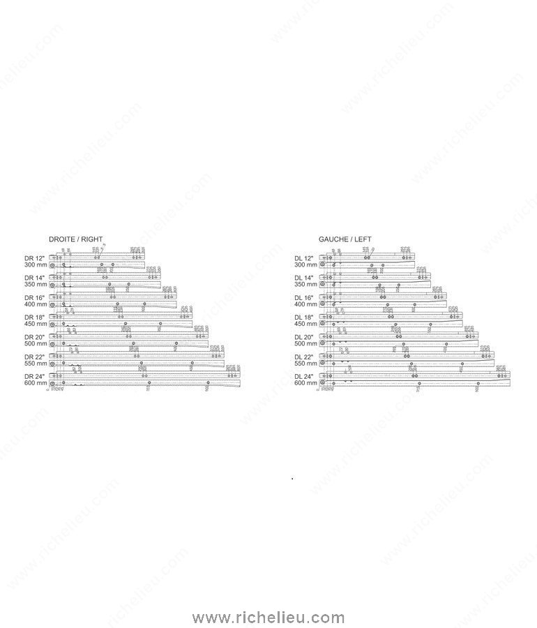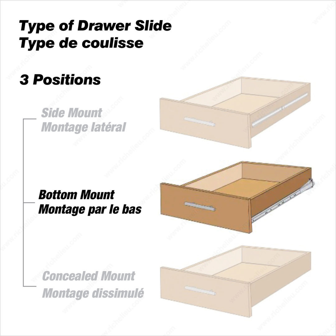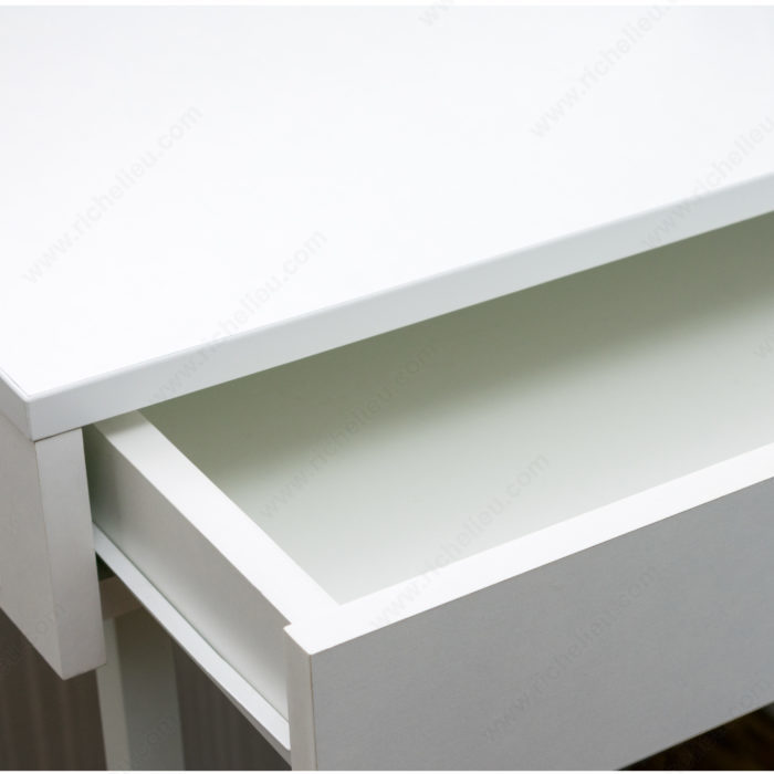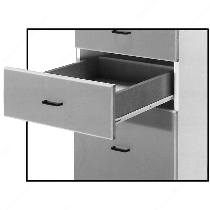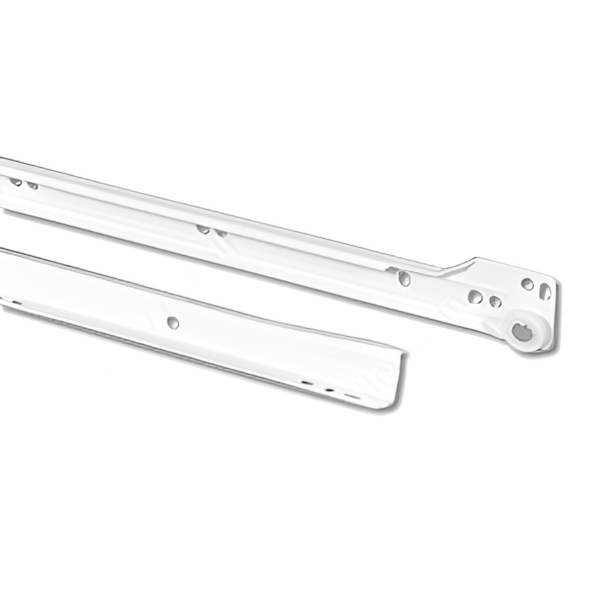 Richelieu TP10240030 Series 102 Euro Slide 3/4 Extension offers an ideal solution for enhancing the functionality of kitchen drawers, dressers, and nightstands. Designed with a robust epoxy finish, these slides provide maximum resistance to wear and tear, ensuring longevity in various furniture applications. The gravity mechanism seamlessly utilizes the weight of drawer contents for smooth closing, making it a reliable choice for everyday use. With a load capacity of 75 lbs, this side-mounted slide is perfect for frameless cabinet models. Measuring 15 3/4 inches in length and 1.46 inches in width, it boasts a compact profile while maintaining strength and durability with its steel construction. The partial extension feature allows for easy access to drawer contents without fully extending the slide, making it both practical and efficient. Designed for versatility, the TP10240030 can be used on both sides and is compatible with rear sockets for face frame applications (BP99612). Whether you're upgrading existing furniture or designing new pieces, this Euro slide combines essential functionality with a sleek white finish, making it an excellent choice for any project. Enjoy the ease of installation and the benefits of high-quality craftsmanship with Richelieu's trusted products.