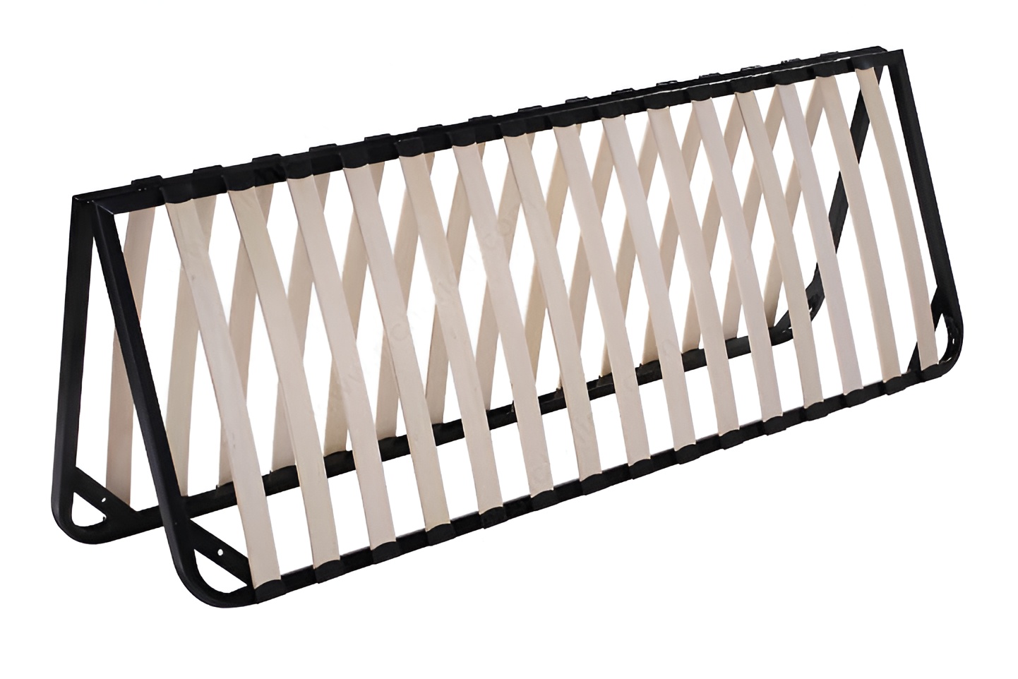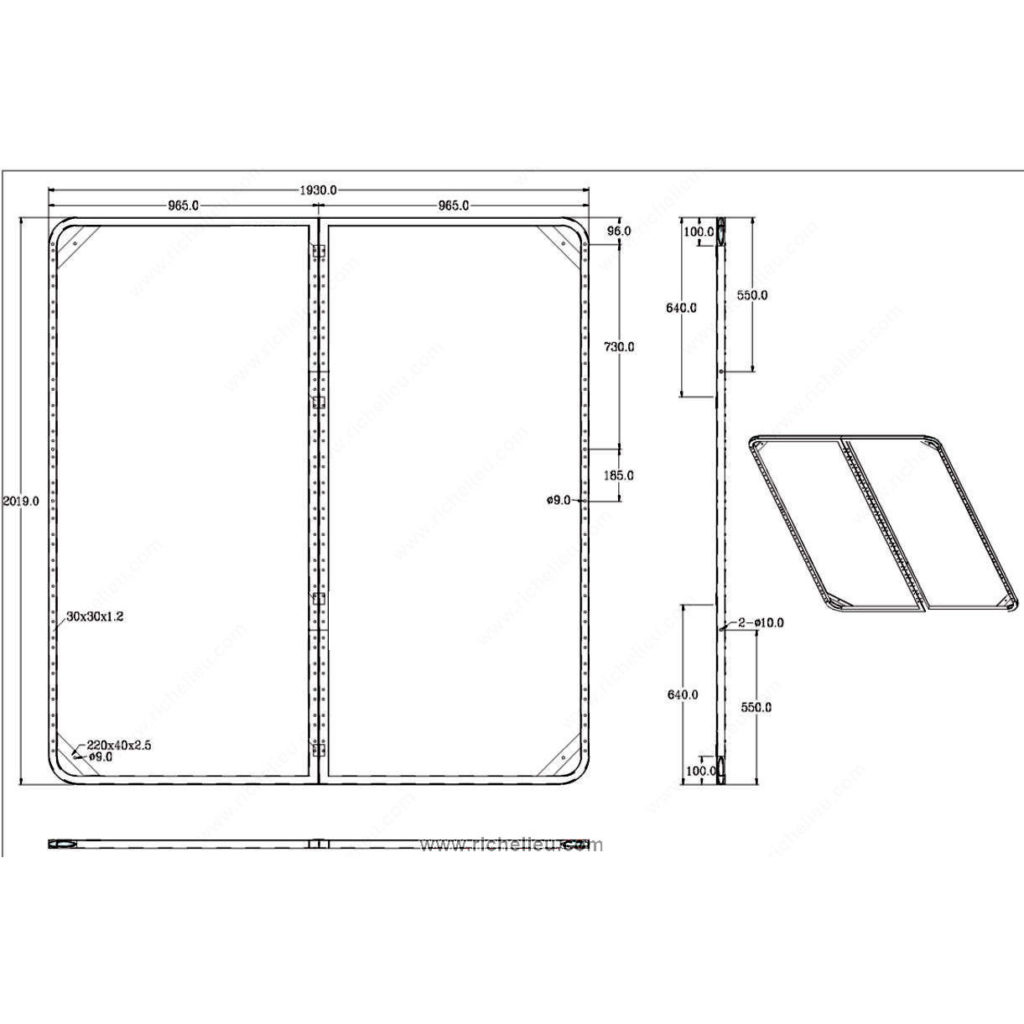 Richelieu XULT81FOLD Folding Slatted Bed Base offers a sophisticated solution for your sleeping needs with its robust design and innovative features. Constructed with a rigid metal frame, this bed base supports a series of curved plywood slats, ergonomically arranged to enhance comfort and support. The natural flexibility of the wood, combined with high-tech engineering, ensures a restful night’s sleep. Measuring 79 ½ inches in depth and length, this model is specifically designed to accommodate a king mattress (76 in x 80 in) without the need for a box spring. The black finish adds a sleek, modern touch to any bedroom decor, while its folding capability at the center simplifies both transportation and installation. With a static load rating of 772 pounds, the XULT81FOLD is built to withstand the rigors of daily use. Each slat features a thickness of 11/32 inches and a width of 2 3/32 inches, contributing to the overall strength and stability of the bed base. Ideal for both building professionals and discerning homeowners, the Richelieu XULT81FOLD Folding Slatted Bed Base is a perfect blend of functionality and style, ensuring a durable foundation for a peaceful night's sleep.