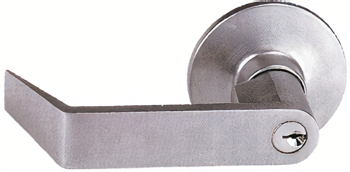 Cal Royal 8000L26D Classroom Lever Trim offers a robust solution for securing commercial and educational environments. Designed with a non-handed Grade 2 lever, it features a tubular body with a hardened steel heavy-duty tailpiece, ensuring durability and reliability. This lever trim is suitable for doors measuring 1-3/4" thick and is compatible with both fire-rated and non-fire-rated rim and vertical rod exit devices. With a 3-1/2" rose diameter and a lever length of 4-3/4", it fits and covers a standard 161 cutout seamlessly. The satin chrome finish (US26D) not only enhances its aesthetic appeal but also provides excellent resistance to wear. It operates under various functions, including the classroom function that allows for key locking and unlocking of the lever, making it ideal for educational settings. The 6-pin solid brass "C" keyway is standard, with options to accommodate high-security cylinders from Medeco, Assa, Kaba, and Cal-Royal HSK. Designed for easy installation and operation, the Cal Royal 8000L26D delivers both security and convenience, making it a valuable addition to your building's access control system. Whether you're upgrading existing hardware or outfitting a new space, this lever trim is engineered to meet your needs effectively.