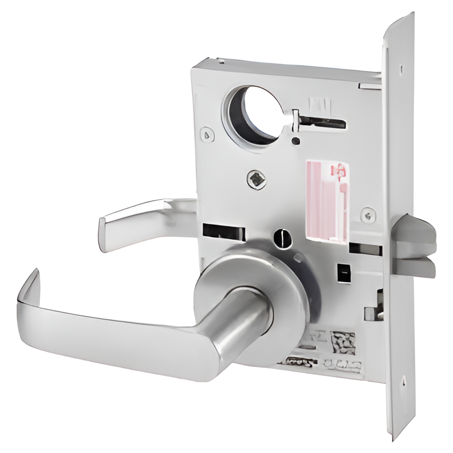 Corbin Russwin ML2003 NSA 626 LC V10-EMA-RH V01 Newport Lever Classroom Mortise Lock with Indicators, Satin ChromeCorbin Russwin ML2003 NSA 626 LC V10-EMA-RH V01 KIT is a robust classroom mortise lock designed for high-traffic environments. Constructed from heavy-gauge steel, this ANSI/BHMA Grade 1 lock ensures durability and reliability in demanding settings. The lock features the elegant Newport lever with an A Rose trim, providing a sophisticated look while maintaining functionality. Equipped with dual visual indicators, users can easily discern the locked or unlocked status from both the exterior and interior, with clear green and red engravings. The lock's direct drive performance guarantees consistent torque, while the crisp lever return prevents sagging. With a field-reversible latchbolt, installation and re-handing are simplified, allowing for versatile application across various door types, including bullet-resistant and hollow metal doors. The ML2003 is compatible with a wide range of Corbin Russwin key systems and integrates seamlessly with access control platforms. It also boasts EcoFlex® technology, delivering up to 89% energy savings. Designed to exceed ANSI/BHMA Grade 1 standards, this lock comes with a ten-year limited warranty, ensuring peace of mind for both building professionals and knowledgeable homeowners. Choose the Corbin Russwin ML2003 for a secure, stylish, and efficient locking solution.