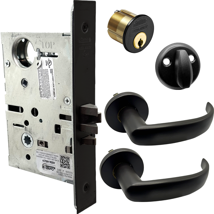 KIT - Entry or Office Mortise Lock, Princeton Lever with A Rose Trim, Standard 1-1/8 Mortise Cylinder, A01 Clover Cam, L4 Keyway 0-Bit, Handing is Field Reversible, ANSI Strike SS118, 622/US19/BSP Black Suede Powder Coat