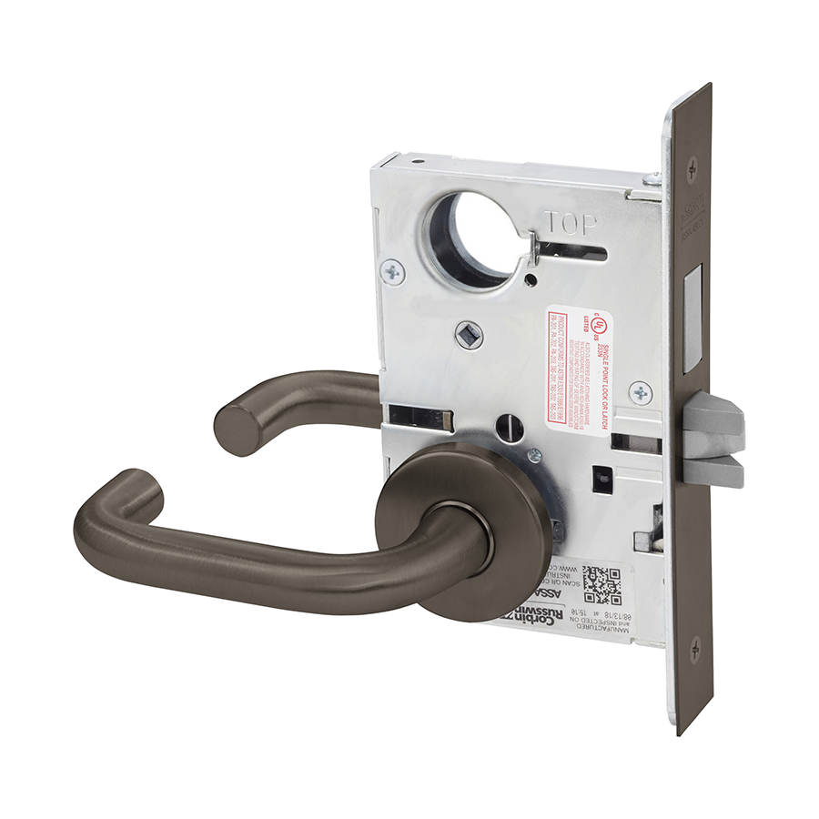 Corbin Russwin ML2065 LWA 613E LC V20 V01 Dormitory Mortise Lock with Deadbolt Indicators, Oil Rubbed BronzeCorbin Russwin ML2065 LWA 613E LC V20 V01 KIT is a robust dormitory mortise lock equipped with a reliable deadbolt and a Lustra lever featuring an A Rose trim. This lock is designed for high-traffic environments, ensuring durability and security in demanding settings. Constructed from heavy-gauge steel, it meets ANSI/BHMA Grade 1 standards, providing peace of mind with its resistance to intrusion and wear. The lock includes dual indicators-a V20 outside indicator showing vacant/occupied status and a V01 inside indicator for locked/unlocked status, both utilizing vivid green/red signals for clear visibility. The direct drive performance ensures consistent torque while the lever return is crisp, preventing sag over time. This model is adaptable, accommodating a variety of trim options and functions, including 63 mechanical and electrified choices. With features like EcoFlex® technology for significant energy savings, a field-reversible latchbolt for easy installation, and compatibility with existing Corbin Russwin key systems, this mortise lock stands out in functionality. The ML2065 is UL Listed and comes with a generous ten-year limited warranty, making it a practical and sustainable choice for any dormitory setting. Choose the Corbin Russwin ML2065 for a blend of innovation, security, and reliability.