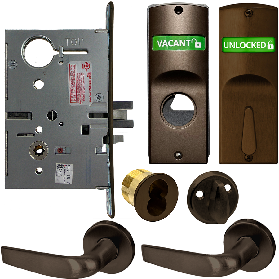 KIT - Apartment Mortise Lock with Deadbolt Toggle, Citation Lever with A Rose Trim, LFIC 6-Pin Large Format Interchangeable Core Mortise Housing, A01 Clover Cam, Less IC Core, V20 Outside Indicator (Vacant/Occupied, Green/Red), V01 Inside Indicator (Locked/Unlocked, Green/Red), ANSI Strike SS118, 613E/US10BE Oil Rubbed Bronze