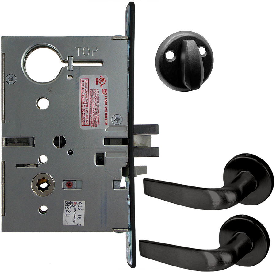 KIT - Apartment Mortise Lock with Deadbolt Toggle, Citation Lever with A Rose Trim, Less 1-1/8 Mortise Cylinder, Handing is Field Reversible, ANSI Strike SS118, 622/US19/BSP Black Suede Powder Coat