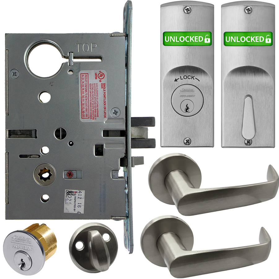 The ML2000 Series is an ANSI/BHMA Grade 1 mortise lock designed to meet the rigors of high-traffic, abusive environments. Constructed of heavy-gauge steel with unique, patented features and a full range of functions including status indicators and trim, the versatility and reliability of this lock complement any application. Corbin Russwin’s status indicator options offer a unique and highly visible window design and provides clarity on the locked/unlocked status of a door. Available for use with a wide range of trim options and with a variety of functions, the mortise lock status indicators are versatile for any application.