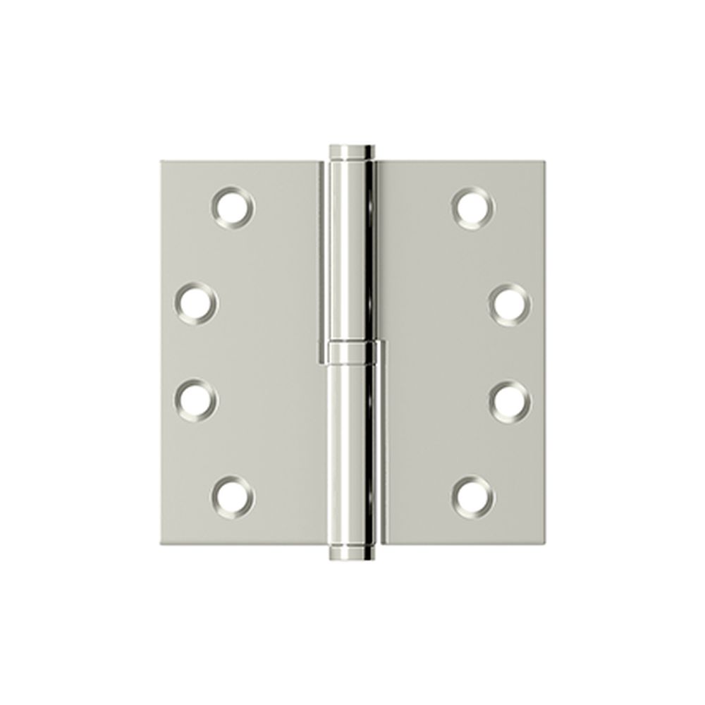 Deltana DSBLO414RH Right Hand 4" x 4" Square Lift-Off Hinge in a Bright Nickel Finish combines functionality with elegance, making it an ideal choice for a variety of door applications. Crafted from solid brass, this hinge ensures durability while maintaining a sleek appearance, thanks to its eye-catching bright nickel finish. Designed for easy installation, the lift-off feature allows for quick mounting and removal of doors, which is particularly beneficial for maintenance and access. With square corners and a button tip style, this hinge exudes a modern aesthetic that complements both traditional and contemporary settings. The hinge is equipped with two knuckles and features a non-removable pin, providing added security and stability. The Deltana DSBLO414RH is a right-handed hinge that ships via UPS and is backed by a limited 1-year mechanical and finish warranty, assuring quality and peace of mind. This versatile hinge is compatible with decorative finials, allowing for customization to suit your style preferences. Perfect for high-traffic areas, it operates smoothly on ball bearings, ensuring long-lasting performance. Make a smart choice for your architectural hardware needs with Deltana's trusted craftsmanship and extensive selection.
