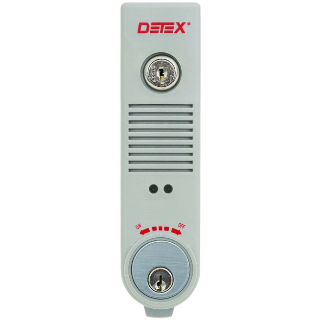 Detex EAX300GRY Surface Mount Battery Powered 100DB Door Prop Alarm is an essential security solution for commercial spaces. Designed to enhance safety, this alarm features internal magnetic door contacts that effectively detect unauthorized door propping. With a robust 100DB sound output, the alarm provides an immediate alert to potential security breaches, ensuring swift action can be taken. Measuring 2-1/10" x 7-7/10", this alarm comes in a sleek gray finish that seamlessly integrates into various architectural settings. The EAX300GRY is UL Listed, confirming its quality and reliability in commercial environments. Additionally, it is fire-rated, offering an extra layer of protection in critical situations. Installation is straightforward with its surface mount design and accompanying mounting plate. Furthermore, the product is backed by a limited 10-year mechanical warranty and a 3-year electronic warranty, providing peace of mind for your investment. The EAX300GRY is free from hazardous materials, making it a safe choice for any facility. Whether you're upgrading existing security measures or implementing new ones, the Detex EAX300GRY Door Prop Alarm is a dependable and effective option for maintaining security in your space.
