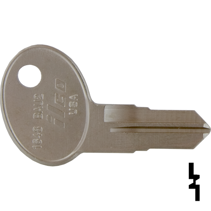 Ilco Unican Corporation Dormakaba 1648 Bauer Key Blank BAU2 offers a versatile solution for both residential and commercial locking systems. This key blank is part of the extensive Ilco and Ilco EZ line, which features thousands of key blanks made from durable materials like brass and nickel silver. The nickel-plated finish ensures a long-lasting and resilient product, perfect for everyday use. Designed for easy identification, the plastic head keys come in various colors, making them a practical choice for quick access. Additionally, the Ilco line includes flat steel and safe deposit key blanks, ideal for a variety of applications, including warded padlocks, gym lockers, and yard tractors. Although the prevalence of bit and barrel keys has decreased with newer locking technologies, Ilco remains committed to providing these options for restoration projects and niche needs. With alternate codes such as 140551 and BAU2, this key blank is compatible with various locking mechanisms, ensuring you have the right solution at your fingertips. Whether you are a building professional or a knowledgeable homeowner, the Dormakaba 1648 Bauer Key Blank BAU2 is a reliable choice that meets the demands of today's security landscape. Shipping is available via UPS for your convenience.