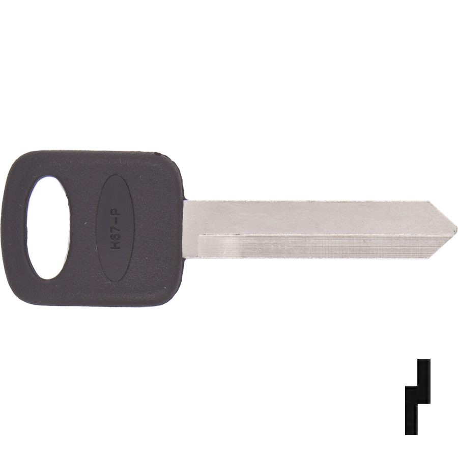 Ilco Unican Corporation H67-P Ford 1193FD-P automotive key blank offers a reliable solution for vehicle owners needing a replacement key. This key features a transponder chip embedded in its plastic head, allowing seamless communication with the vehicle’s immobilizer system, ensuring that you can start your vehicle with confidence. Constructed primarily from high-quality brass or nickel silver, the H67-P is nickel-plated for enhanced durability and a long-lasting, bright finish. This key is designed not only for Ford vehicles but also encompasses a wide range of applications, making it suitable for motorcycles, recreational vehicles, boats, and more. Whether you're restoring a classic ride or managing the keys for a modern vehicle, Ilco's product line is extensive enough to meet diverse needs. The H67-P is categorized under Automotive Key Blanks and is compatible with various alternate codes, including 106809, 1193FD-P, and 1194FD-P, among others. It ships conveniently via UPS, making it accessible for both professionals and knowledgeable homeowners alike. Trust Ilco Unican Corporation to provide the quality and reliability you expect in automotive hardware, ensuring your vehicle remains secure and operational.