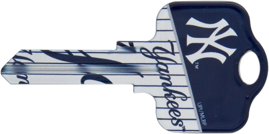 Ilco Unican Corporation KW1-MLB-YANKEES Team Key brings a fun and functional twist to your everyday security needs. This fully functional painted house key features the iconic New York Yankees logo, allowing you to express your team spirit while ensuring easy access to your home. The key head is designed for Kwikset locks, making it a perfect match for residential use. Manufactured in the USA, Ilco TeamKeys™ are officially licensed by Major League Baseball, complete with a hologram on the packaging to guarantee compliance with league-approved quality standards. This attention to detail ensures that you're receiving a product that not only looks good but also meets the highest expectations for functionality and durability. The KW1-MLB-YANKEES key is part of a diverse category of colored key blanks, suitable for both domestic and foreign applications. With its eye-catching design and practical use, this key is an excellent gift for any baseball fan or a unique addition to your own keyring. It ships via UPS for convenient delivery, making it an accessible choice for sports enthusiasts and homeowners alike. Embrace your passion for the Yankees while keeping your home secure with this vibrant, stylish key.