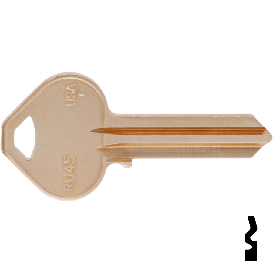 Ilco Unican Corporation Dormakaba TAYRU45 Russwin Key Blank D1-5-10 1011D1 offers a versatile solution for both residential and commercial locking needs. This key blank is part of a comprehensive line that includes various styles such as metal head, plastic head, flat steel, and safe deposit keys. The TAYRU45 is designed to meet the demands of modern security while ensuring ease of use. Crafted from durable materials, including brass and nickel silver, this key blank is nickel-plated for a long-lasting, bright finish that enhances its longevity and resistance to wear. The plastic head options come in a variety of colors, allowing for quick identification and organization among multiple keys. Ideal for use in warded padlocks, gym lockers, and yard tractors, the TAYRU45 Russwin Key Blank is a reliable choice for both traditional and contemporary locking mechanisms. Although Bit and Barrel keys are becoming less common, Ilco continues to provide these options to cater to restoration projects and specific consumer needs. With its compatibility with Corbin Russwin and Taylor key types, the TAYRU45 key blank is a practical addition to any locksmith's inventory or a homeowner's toolkit. Choose Ilco for quality and versatility in key solutions.