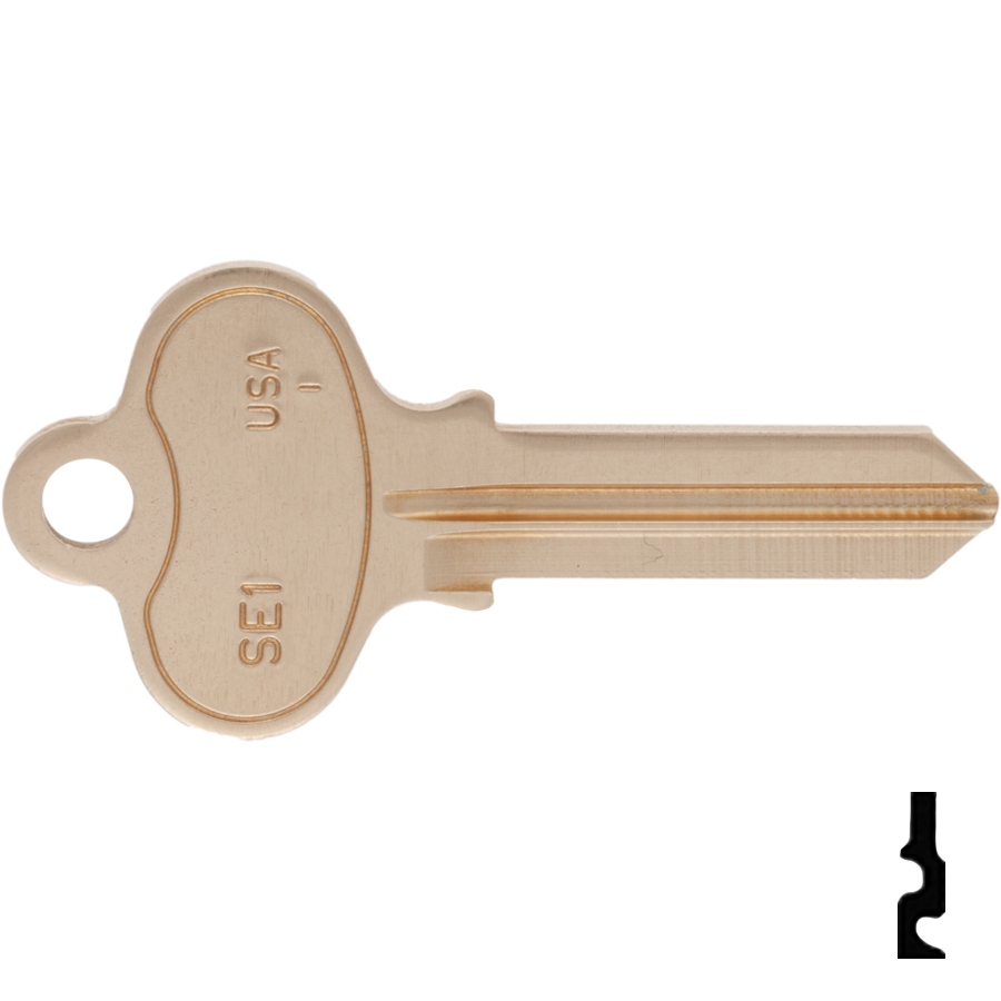 Ilco Unican Corporation Dormakaba TAYSE1 Segal Key Blank 1022 offers a reliable solution for both residential and commercial security needs. This key blank is part of the extensive Ilco line, which features a variety of key types, including metal and plastic head keys. The plastic head options come in a range of colors, allowing for quick identification and easy organization. Manufactured from high-quality materials such as brass and nickel silver, the TAYSE1 key blank ensures a robust and durable performance. Many of these keys are nickel-plated, providing a long-lasting, bright finish that enhances both aesthetics and functionality. The Dormakaba TAYSE1 is particularly versatile, as it fits a variety of applications, including warded padlocks, gym lockers, and yard tractors, thanks to its compatibility with the extensive range of Flat Steel and Safe Deposit key blanks offered by Ilco. While the use of Bit and Barrel keys is declining with the advent of more secure locking mechanisms, Ilco continues to cater to restoration projects by providing these options. With alternate codes like 1022, 131467, SE1, and TAYSE1, this key blank is a practical addition to any locksmith's inventory, ensuring peace of mind for users seeking effective security solutions.