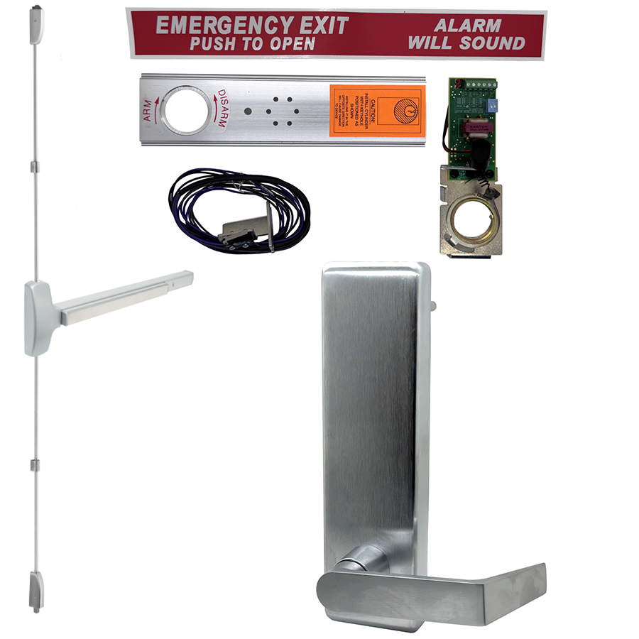KIT - Exit Alarm, SVR Surface Vertical Rod Exit Device, Blank Escutcheon x Dane Lever Trim 510L-BE, 36in x 96in, Less Dogging, RHR Right Hand Reverse/Reversible, Grade 1, 626/US26D Satin Chrome