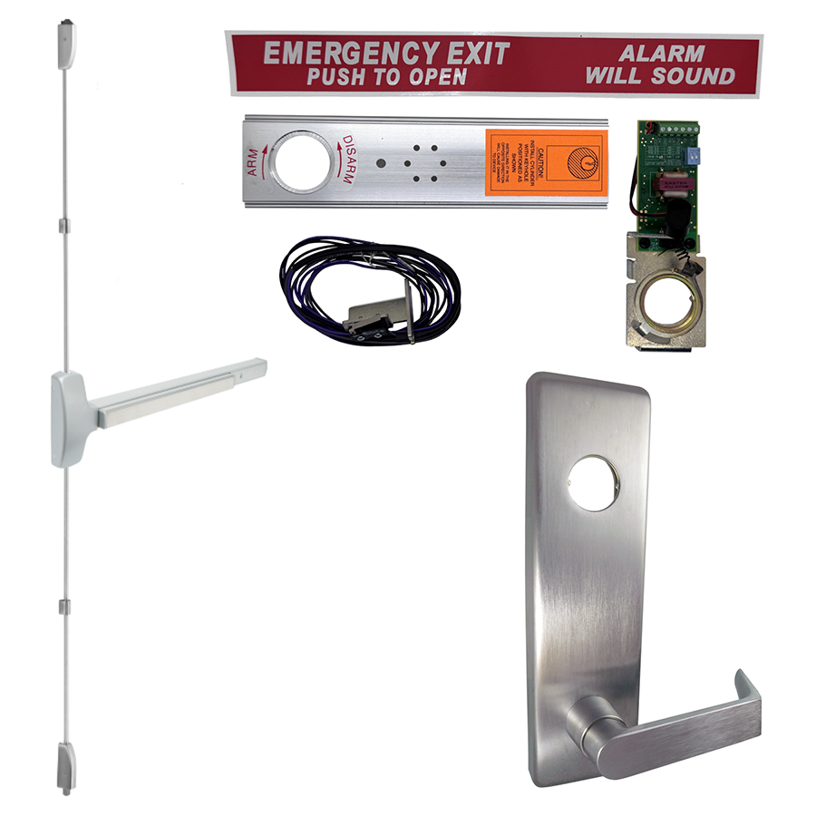 KIT - Exit Alarm, SVR Surface Vertical Rod Exit Device, Escutcheon x Dane Lever Trim 510L, 36in x 96in, Less Dogging, RHR Right Hand Reverse/Reversible, Grade 1, 626/US26D Satin Chrome