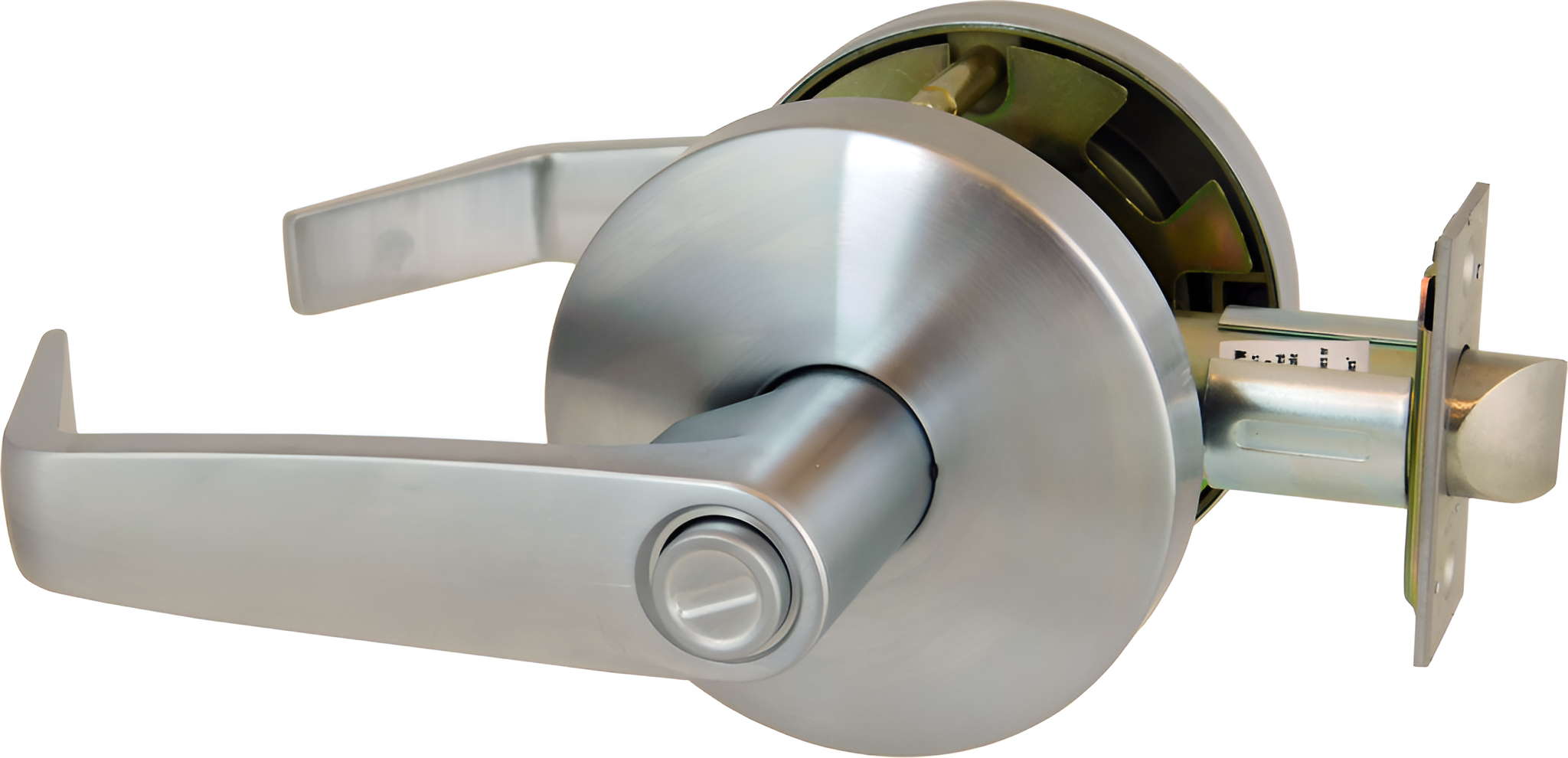 - Levers are solid pressure-cast zinc, finished to match matingparts. Roses are wrought brass or bronze installed over steel through-bolted rose inserts. A spring-loaded retainer secures levers. Secure side retainer cannot be depressed without a key that operates the lock.