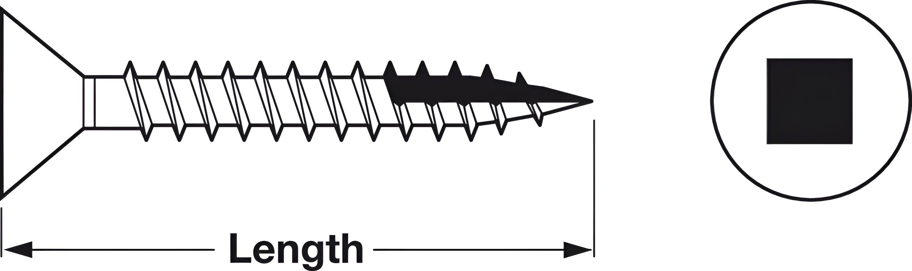 Zip-R Screw, Flat Countersunk Head, 2 Square Drive