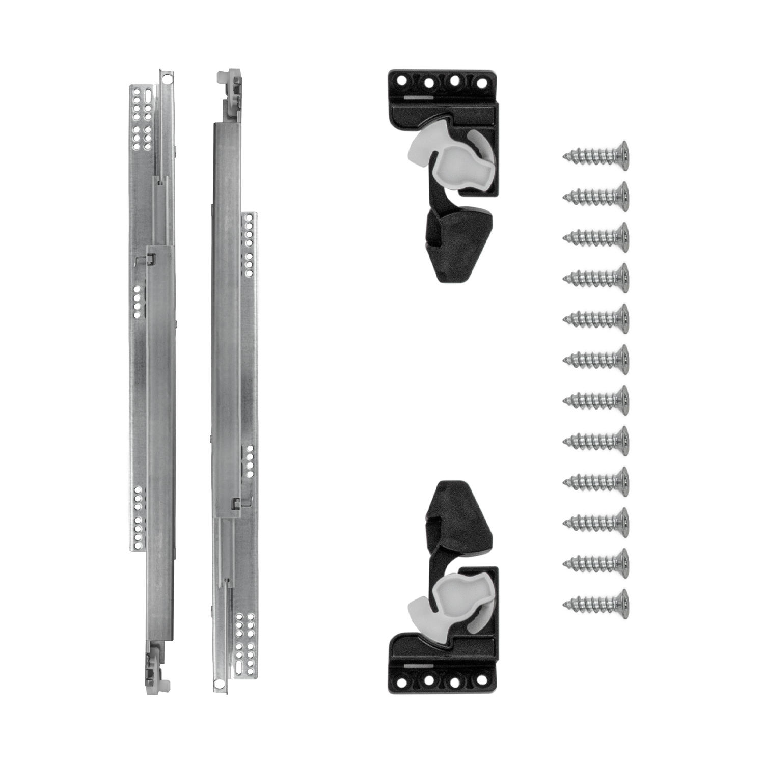 Included In Package: Lefty & Righty Slide Pair, Left & Right Locking Clips, Sixteen #6 x 5/8 Inch Wood Screws, Instructions