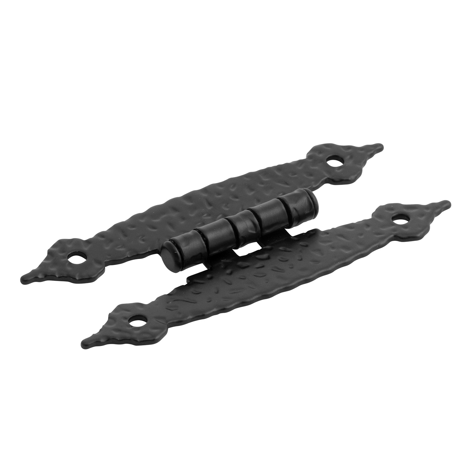 Hickory Hardware P106-CB 2-7/16 Inch Center to Center Southwest Lodge Hinge seamlessly blends rustic charm with practical functionality. Crafted from resilient steel, this hinge is designed to enhance any cabin or cottage-style décor while ensuring dependable performance. With a striking Colonial Black finish, the hinge coordinates beautifully with most semi-gloss black surfaces, creating a cohesive look that draws attention to its unique textural details. The Southwest Lodge collection is perfect for those looking to infuse character into their spaces. This hinge features a 180-degree opening, allowing for free swinging access, which is particularly beneficial in busy kitchen or bathroom environments. The flush/full inset design and four hinge screw holes ensure a secure installation, making it a reliable choice for both homeowners and builders. Included with each pair of hinges are eight #6-20 x 3/4 inch Type AB thread combo drive square head tapping screws in matching finish, along with two foam pads for added convenience during installation. The hinge's dimensions measure 2-7/16 inches center to center, with a projection of just 1/4 inch, making it suitable for a variety of cabinet styles and configurations. Since 1893, Hickory Hardware has been recognized as a premier producer of quality decorative cabinet hardware, and the Southwest Lodge hinge exemplifies this dedication to craftsmanship. With a limited lifetime warranty, this product not only enhances aesthetic appeal but also offers long-term reliability, making it an excellent investment for your home or project.