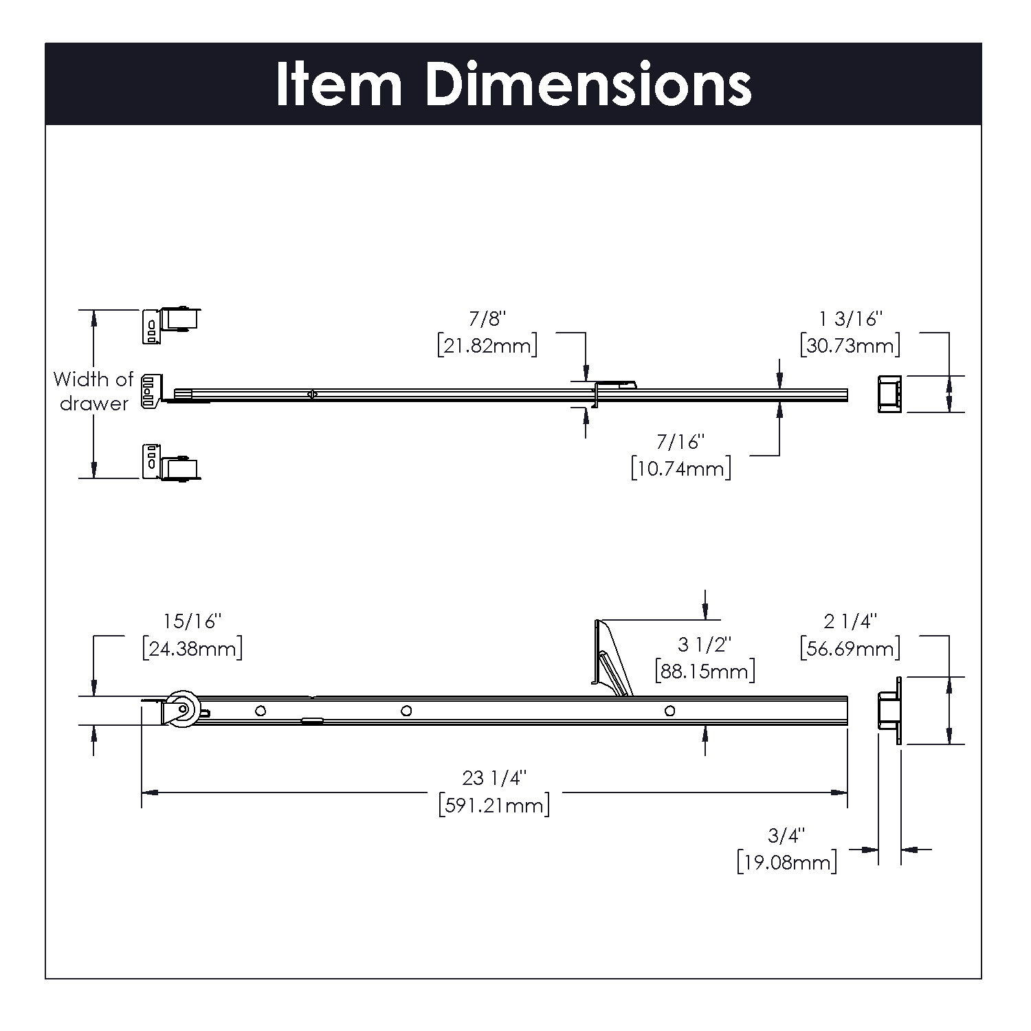 Hickory Hardware P1175-2C 23-5/16 Inch Drawer Slides offer a reliable solution for your drawer needs, combining functionality with ease of installation. Designed to accommodate most drawers up to 23-1/2 inches in depth, these mono rail drawer slides can be cut to any length, ensuring a perfect fit for your specific project. With a load capacity of 25 lbs, they are ideal for lightweight drawers, making them a practical choice for both DIY enthusiasts and professionals alike. Featuring a smooth operation, the slides utilize rollers mounted to the cabinet and one roller on the drawer, which runs seamlessly within a guided rail underneath. This design not only enhances performance but also provides a straightforward replacement option for existing mono rail setups, delivering an economical solution for light-duty applications. Included in the package are all essential mounting hardware and installation instructions, ensuring that even those new to home improvement can install these drawer slides with confidence. The cadmium finish adds a touch of sophistication, coordinating well with most metallic silver finishes and offering a cool grey hue with a satin sheen. Constructed from durable steel and plastic materials, these slides promise long-lasting performance. Hickory Hardware has been a trusted name in decorative cabinet hardware since 1893, and the P1175-2C drawer slides carry on that tradition with their dependable quality and timeless appeal. With a limited lifetime warranty, you can feel assured of their durability and performance in any kitchen, bathroom, or furniture project.