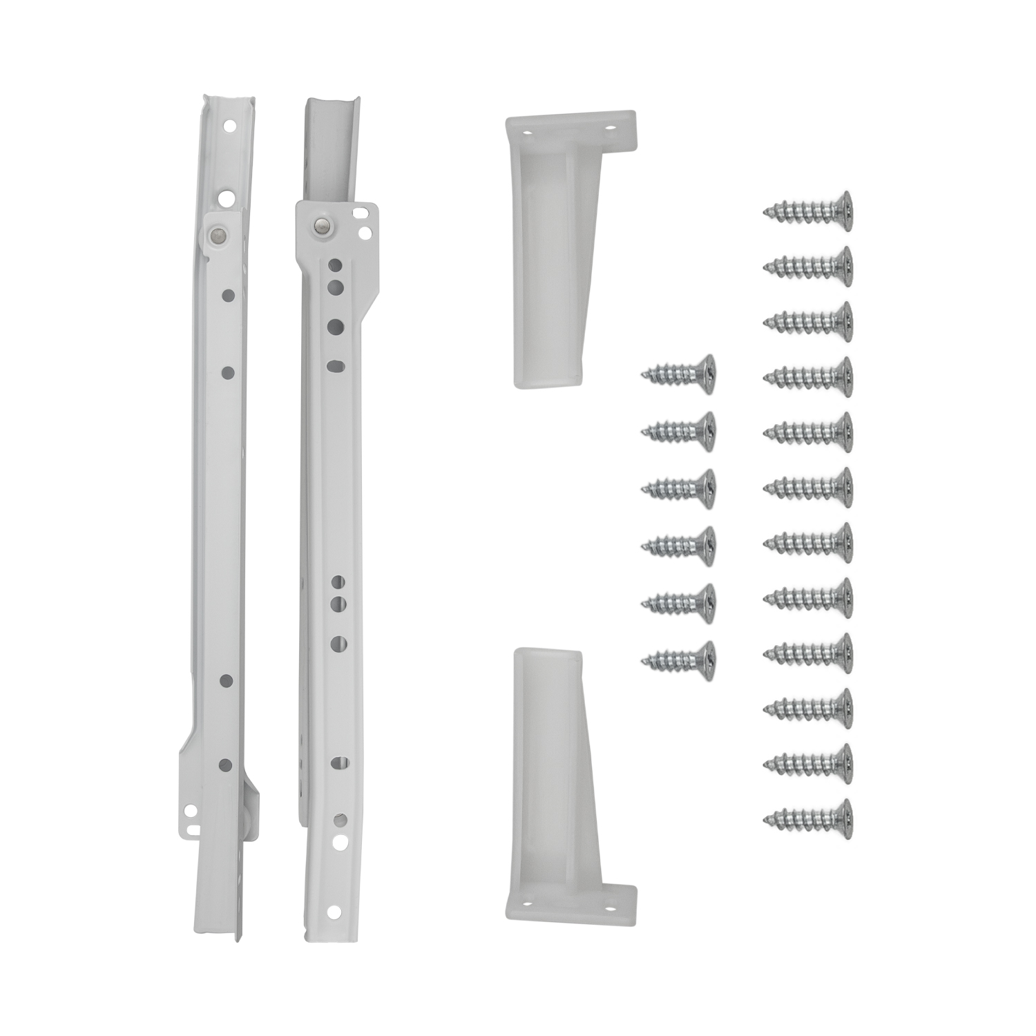Included In Package: Lefty & Righty Slide, Lefty & Righty Rear Bracket, Twelve #6 x 1/2 Inch Flat Head Screws, Six #6 x 5/8 Inch Flat Head Screws, Instructions