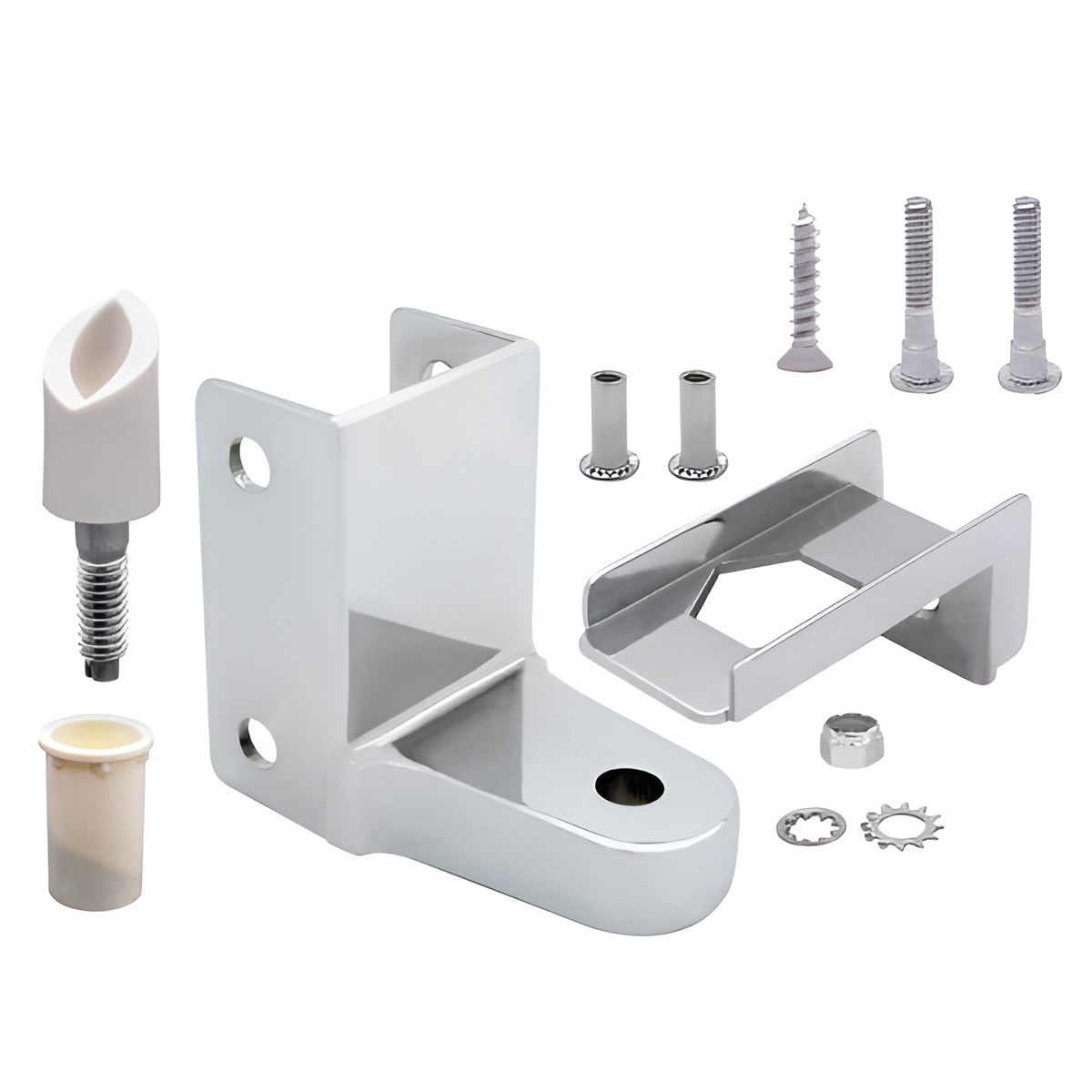 Jacknob 114530 Replacement Pack Bottom Hinge (3290) Insert (2490) offers a comprehensive solution for enhancing the functionality and durability of your commercial restroom partitions. This versatile pack includes four essential components: a 1" large hex door insert, a 3/4" medium lift cam-round hex, a polished chrome screw pack for models 63020 and 63040, and a bottom hinge bracket with a 5/8" pintle. Crafted from high-quality Zamac and finished in polished chrome, these components ensure a sleek, modern look while providing reliable performance. Designed for doors with a thickness of 1 inch and compatible with ASP systems, this hinge replacement pack is ideal for various commercial restroom applications. The square hinge style and robust construction mean it can withstand the rigors of daily use, making it a reliable choice for any building professional or knowledgeable homeowner. With a pilaster thickness of 1-1/4 inches, this replacement pack guarantees a perfect fit and seamless installation. Plus, it ships conveniently via UPS, ensuring you receive your order promptly. Upgrade your restroom partitions with Jacknob's 114530 Replacement Pack Bottom Hinge for a blend of elegance and durability that meets the demands of modern commercial spaces.