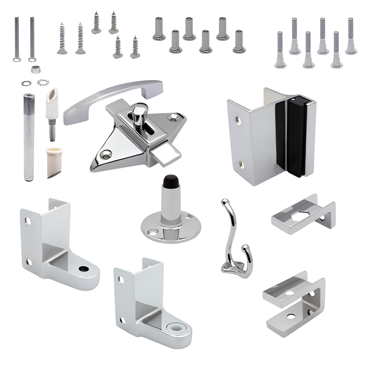 Jacknob 27820 Door Hardware-outswing 7/8" Door 1-1/4" Post (4120)-Chrome offers a sophisticated solution for your commercial restroom needs. Designed specifically for outswing doors with a thickness of 7/8 inches, this hardware package ensures seamless operation and durability. Included in this pack are three essential components: the 260 Screw Pack featuring an open end pilaster shoe in a polished chrome finish, the 4120 Door Stop crafted from Zamac, and the 27800 Door Hardware designed for outswing applications. The polished chrome finish not only enhances aesthetic appeal but also provides excellent corrosion resistance, making it ideal for high-traffic environments. Constructed from Zamac, known for its strength and longevity, this hardware is built to withstand the rigors of daily use. The 1-1/4 inch pilaster thickness offers sturdy support, ensuring stability and functionality. With no specific handing required, installation is straightforward and adaptable to various setups. Shipping is convenient via UPS, allowing for quick delivery to your project site. Upgrade your restroom facilities with the Jacknob 27820 Door Hardware, combining style, durability, and practicality in one comprehensive package.