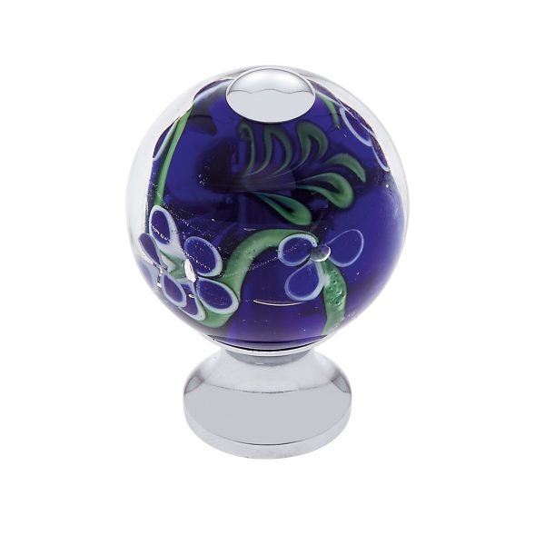 Elevate your cabinetry with the JVJ 45726 30 mm Blue Knob, part of the exquisite Murano collection. Crafted with attention to detail, this cabinet knob combines the elegance of Murano glass with the durability of premium solid brass, ensuring both beauty and longevity in your home or professional projects. Measuring 30 mm in diameter, this knob features a stunning blue design adorned with floral motifs, making it a perfect accent for kitchens, bathrooms, or furniture pieces looking for a touch of sophistication. The polished chrome finish adds a modern flair, seamlessly integrating with various decor styles while enhancing the overall aesthetic. Ideal for builders and seasoned DIY enthusiasts, this knob not only provides a stylish solution to cabinet functionality but also offers a tactile experience that enhances everyday use. The solid brass construction ensures a sturdy grip, while the unique glass design transforms ordinary cabinets into standout features. With JVJ Hardware's commitment to quality craftsmanship, you can trust that this knob will not only meet but exceed your expectations for both performance and style. Whether you are upgrading an entire kitchen or simply refreshing a single piece, the JVJ 45726 Blue Knob is an excellent choice for a refined look that stands the test of time.