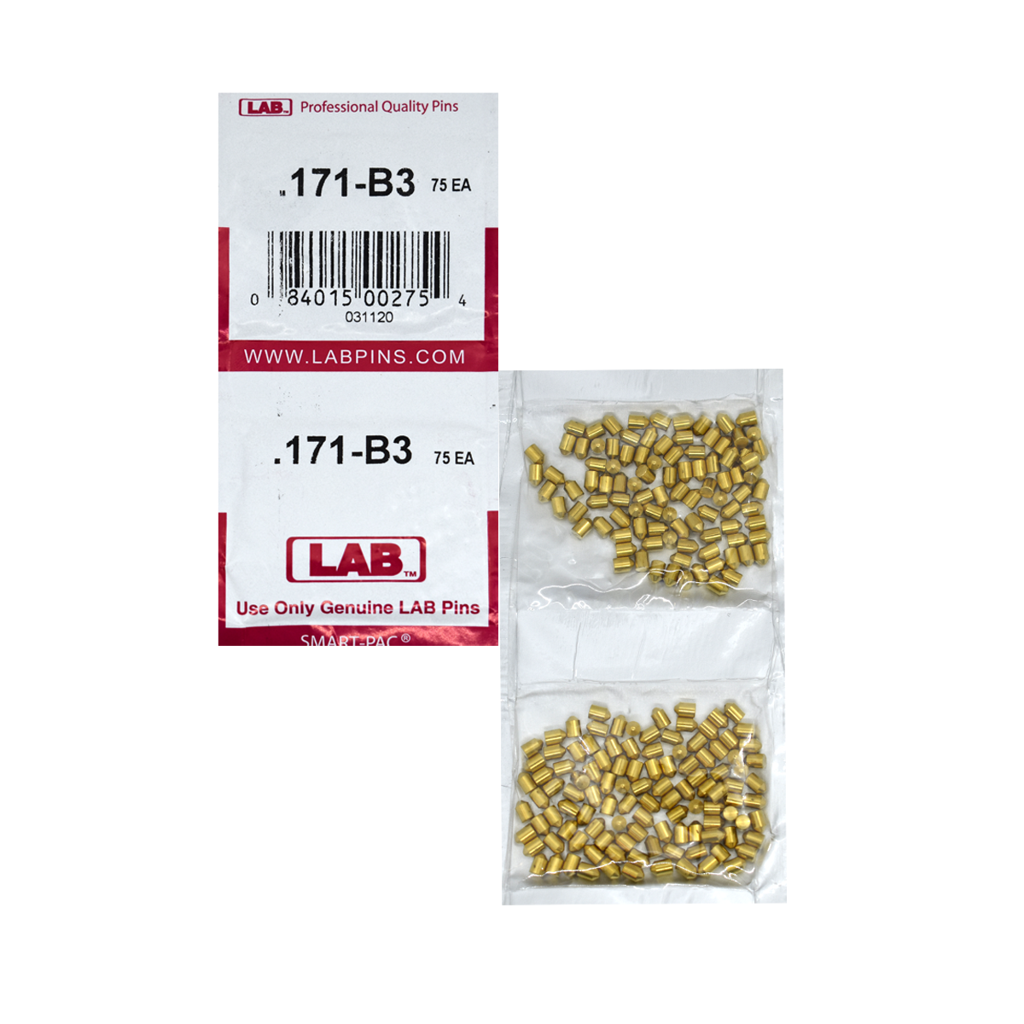 Lab Security Systems LAB 171B .171 Bottom Pin offers a reliable solution for locksmith professionals and DIY enthusiasts alike. Constructed from high-quality brass alloy, this bottom pin boasts a precise .115 diameter, ensuring compatibility with various locking systems. The unique design features radius edges that seamlessly blend into a flat center, eliminating the risk of master pins tipping or rolling during installation, which enhances overall efficiency. Engineered for ease of use, the LAB 171B includes a specially designed nose that reduces key insertion forces, making it simpler to operate even in high-frequency locking applications. With tops ranging from .024 to .141 and bottoms between .126 and .360, this pin can adapt to diverse locking mechanisms, ensuring versatility in various projects. Packaged in a smart pack of 150 pins, the LAB 171B is ideal for professionals looking to stock up on essential components without sacrificing quality. Whether you're working on automotive, residential, or commercial locking systems, this bottom pin is a must-have addition to your locksmith equipment. With alternate codes including 111127, .171, and 530220, you can easily reference this product in your inventory. Trust Lab Security Systems to provide you with dependable lock components tailored for the demands of the industry.