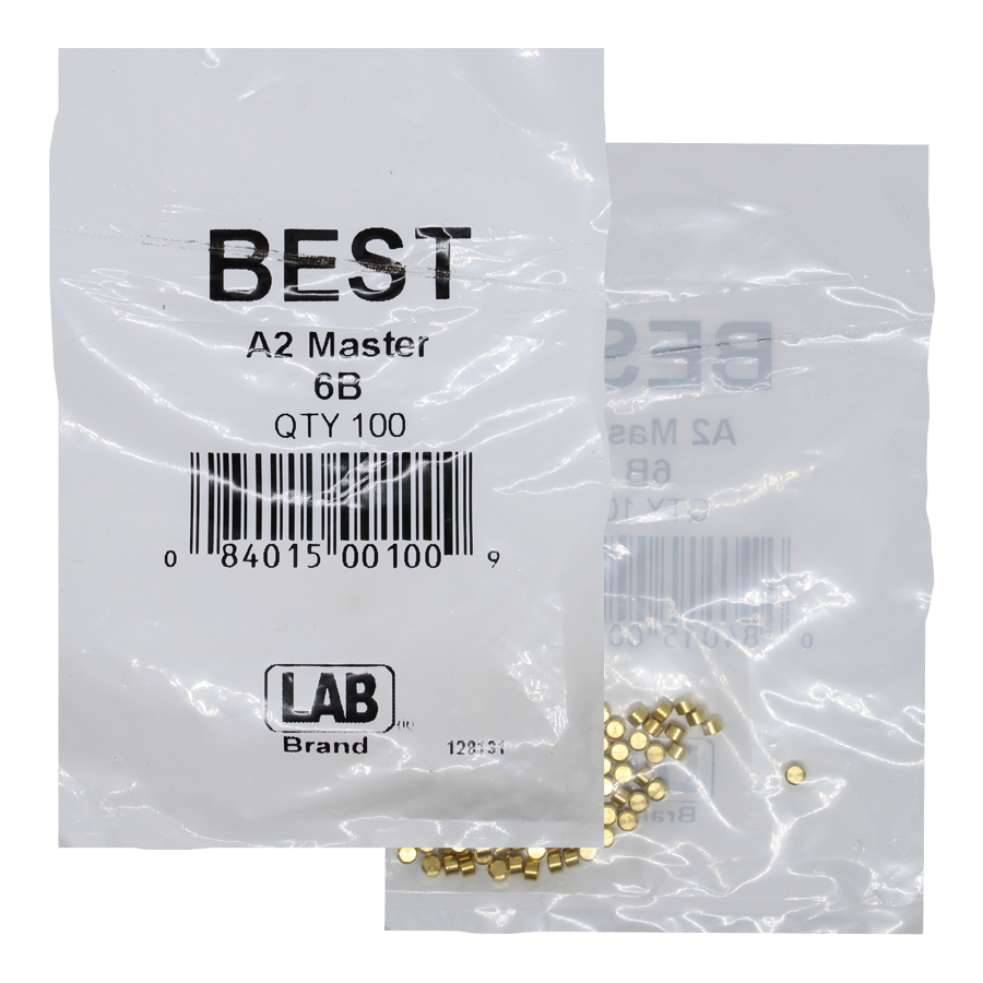 Lab Security Systems BEST-6B-P1 Best A2 Original SFIC 6B Top Pin is an essential component for locksmiths and building professionals seeking reliable lock systems. With a size of .075 inches and a diameter of .108 inches, this top pin is expertly crafted from high-quality brass, ensuring durability and longevity. Packaged in a polybag containing 100 pins, it provides an economical solution for those managing multiple lock installations or repairs. This top pin is designed specifically for use within the A-2 system, which includes 18 brass master/top pins in sizes ranging from 2B to 19B, along with three spool pins in sizes 6B, 8B, and 10B. The A-2 system is complemented by 10 nickel silver bottom pins sized from 0A to 9A, offering compatibility and flexibility for various locking mechanisms. The BEST-6B-P1 top pin also serves as a reliable component for locksmith equipment, making it a staple in any professional's toolkit. Whether you're replacing old pins or setting up new locks, this product contributes to enhanced security and efficient operation. With its robust construction and precise specifications, Lab Security Systems provides the quality and performance you can trust for all your locksmithing needs.