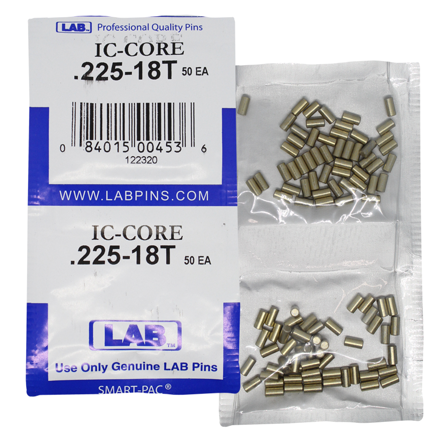 18T Universal SFIC Top Pins, Size .225, Diameter .108, Color-Coded Brass, (A2 Systems), Smart Pac 100 Pins