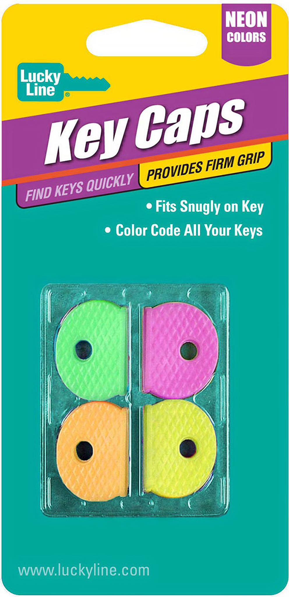 Lucky Line Products 16506 Key Cap Neon Assorted 4/Card offers a vibrant solution to key organization. Designed to keep similar keys easily identifiable, these key caps are perfect for busy professionals and homeowners alike. With an assortment of colors, including classic shades like black, blue, and green, as well as eye-catching neon options such as green, orange, pink, and yellow, you can effortlessly differentiate between keys. Each key cap is crafted from a durable rubber-like vinyl that resists tearing and color fading, ensuring long-lasting use. The pliable material stretches to fit over most standard key heads, providing a secure grip that makes locating the right key a breeze. Measuring 1" x 3/4", these caps are compact yet effective in enhancing your key management. Packaged conveniently in sets of four, the Lucky Line Products key caps are not only practical but also stylish. Whether you need them for your home, office, or automotive keys, these colorful accessories are a smart addition to your security toolkit. With options for non-stock colors available in larger quantities, you can customize your key organization to meet your specific needs. Say goodbye to fumbling through a jumble of keys and elevate your key management with these essential accessories.